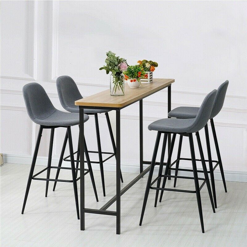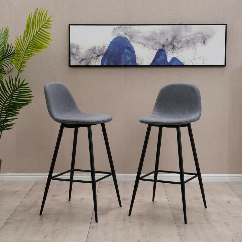 2 Pcs Grey Fabric Bar Stools Metal Legs Breakfast High Chairs Pub Kitchen Modern
