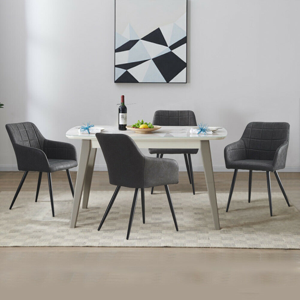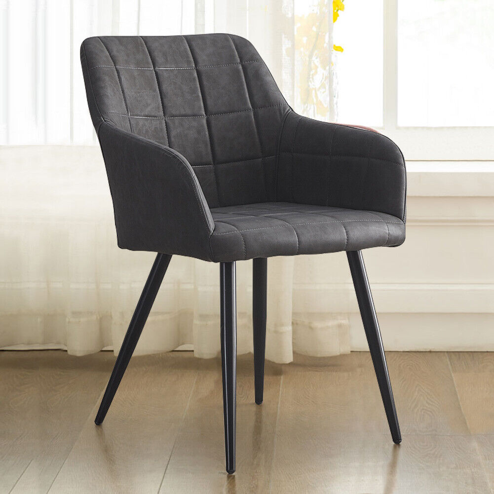 2 Pcs Grey Faux Leather PU Armchairs Dining Chairs Office Dining Room Retro