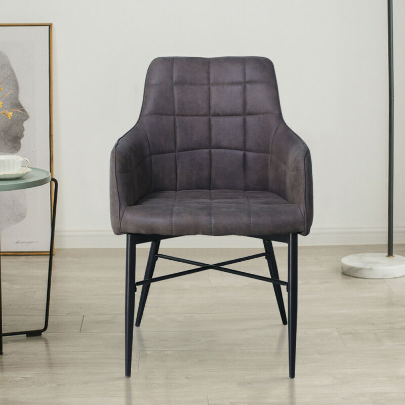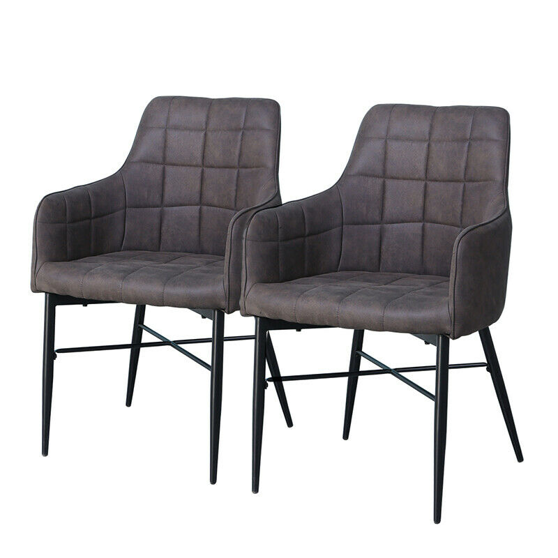 2 Pcs Grey Faux Suede Armchairs Tub Chairs Dining Kitchen Metal Legs Padded Seat