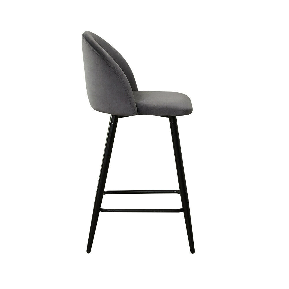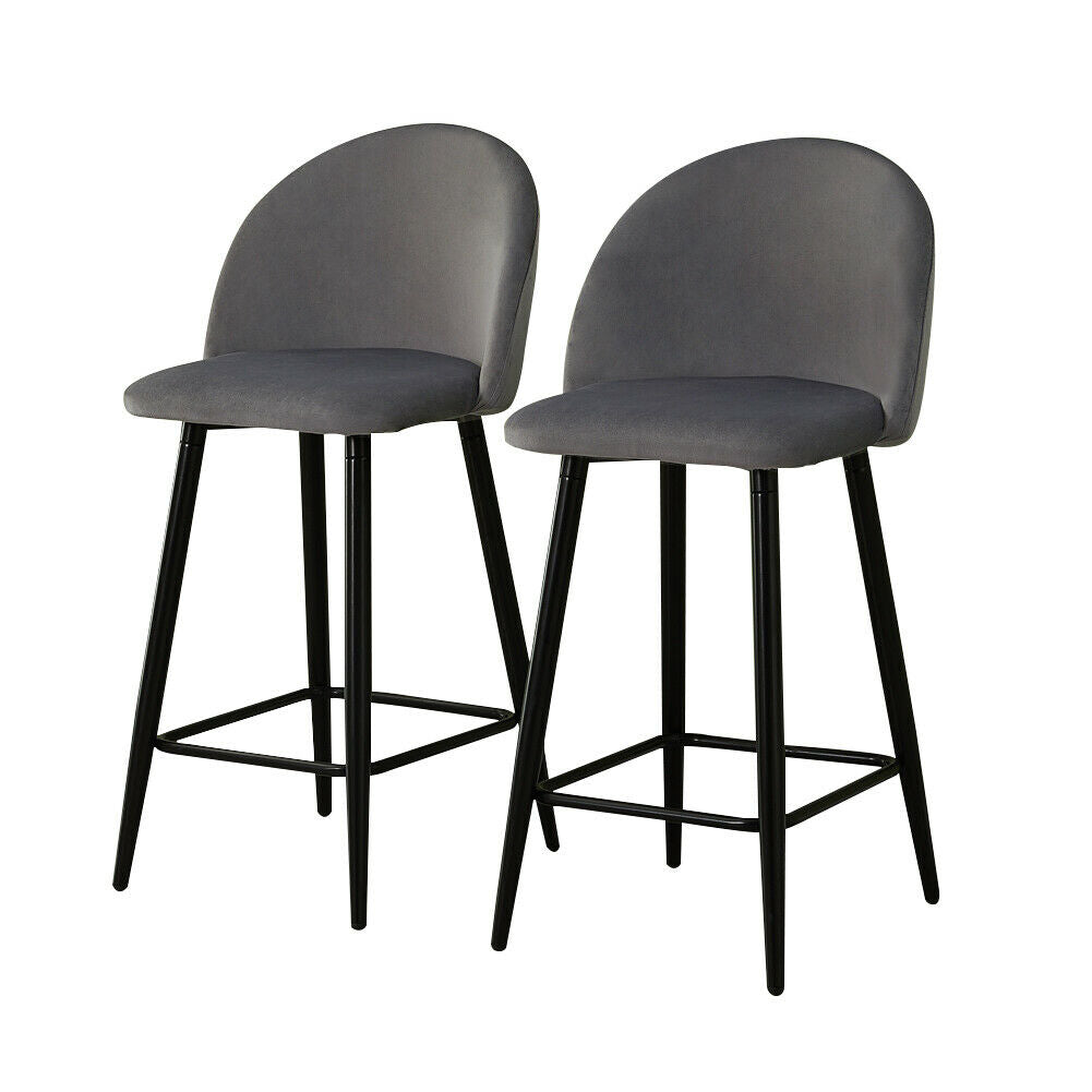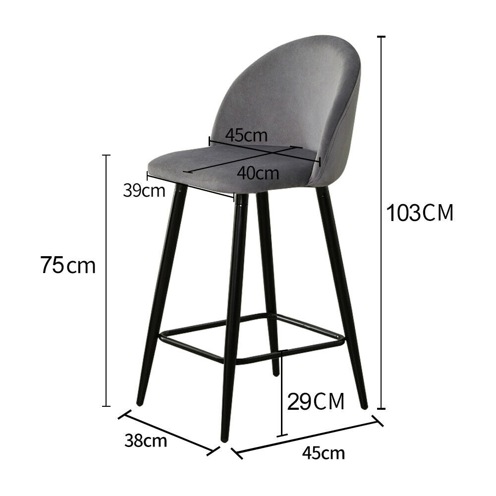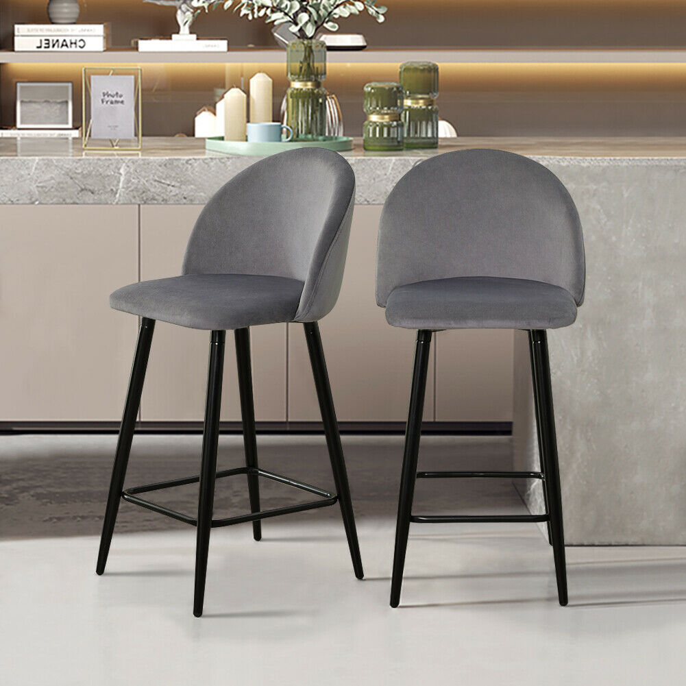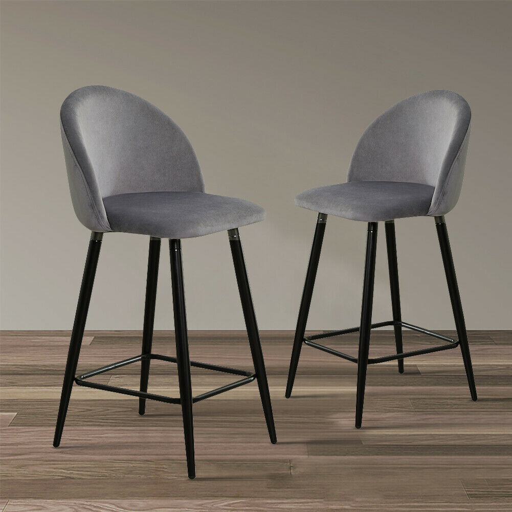 2 Pcs Grey Velvet Bar Stools Breakfast Barstool Kitchen Pub Chair 75cm Seat high