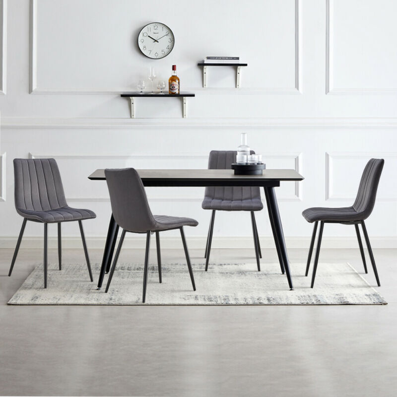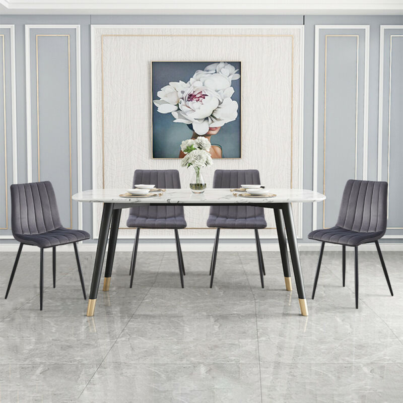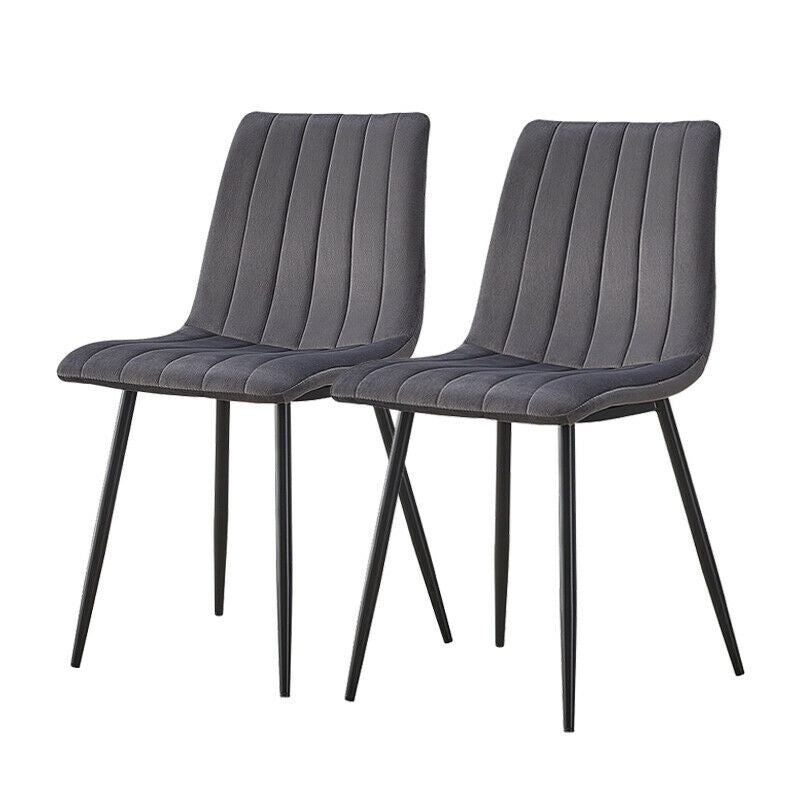2 Pcs Grey Velvet Dining Chairs Metal Leg Padded Seat Kitchen Dining Room Chairs