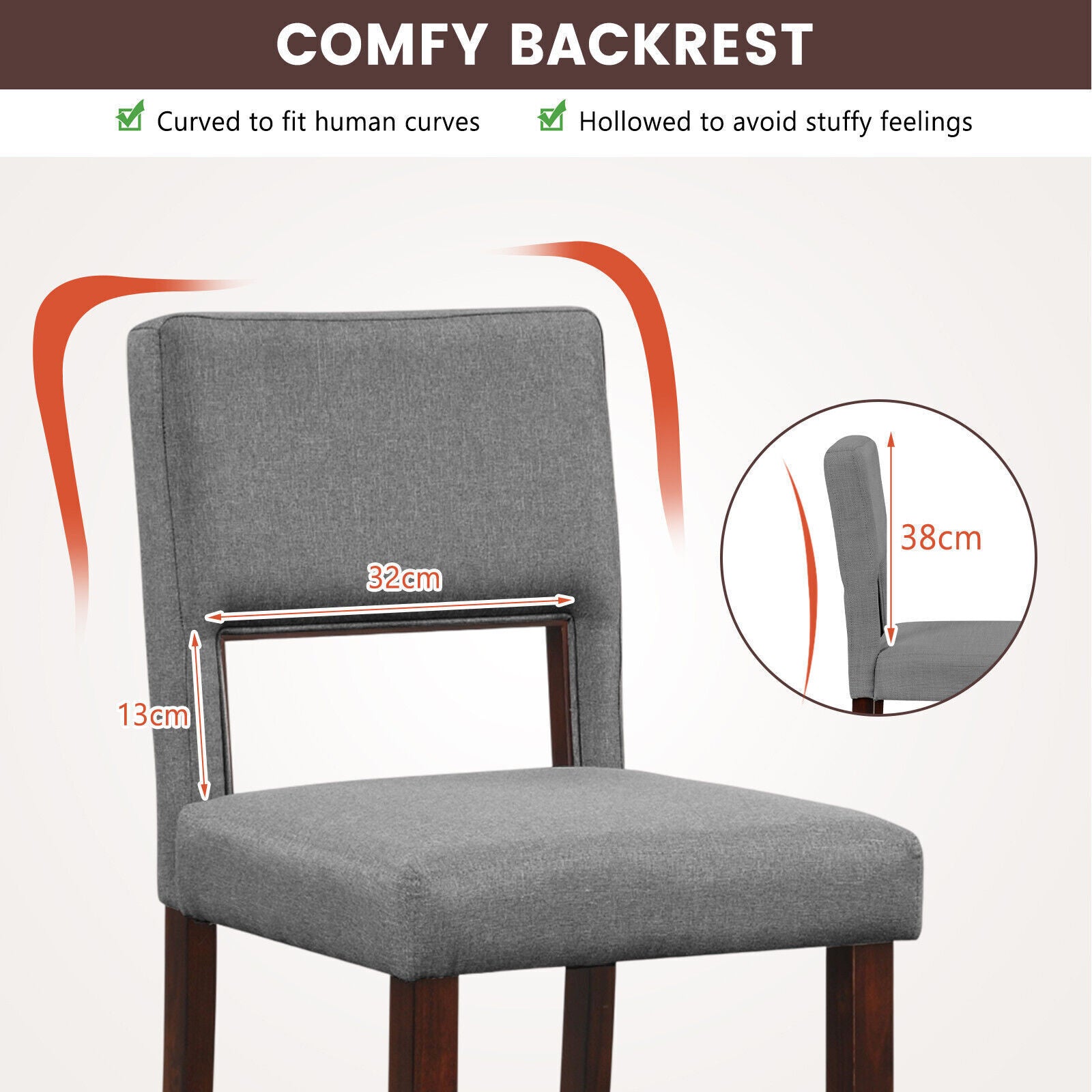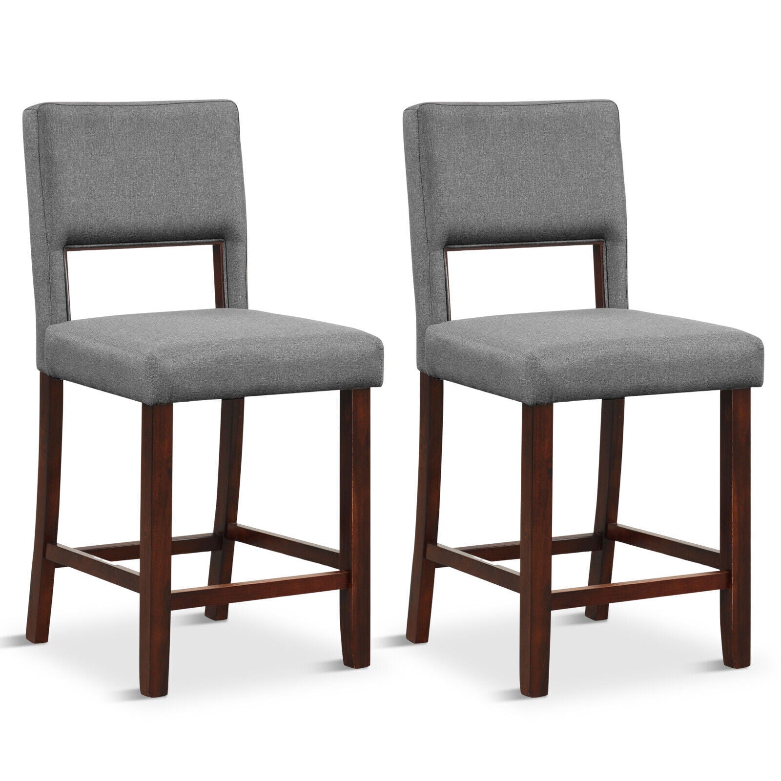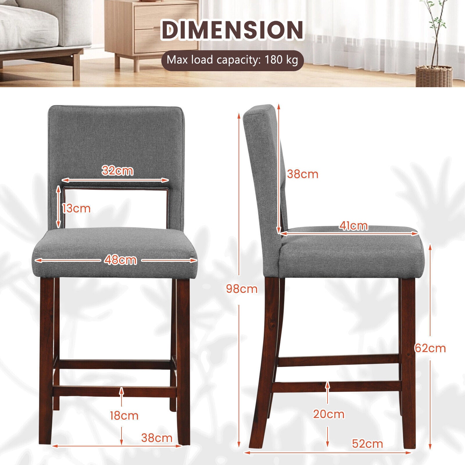 2 Pcs Linen Counter Height Bar Stool Chair Set w/ Hollowed Back Rubber Wood Legs