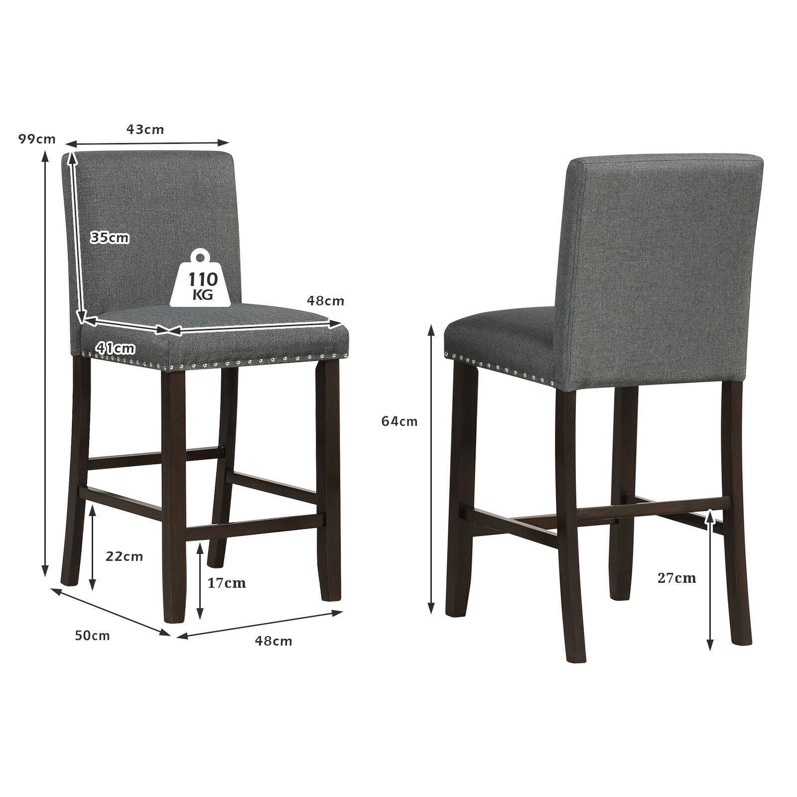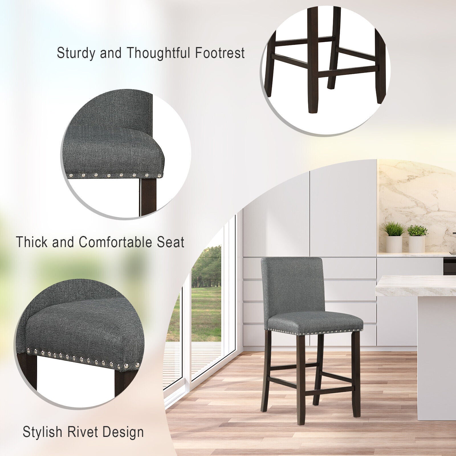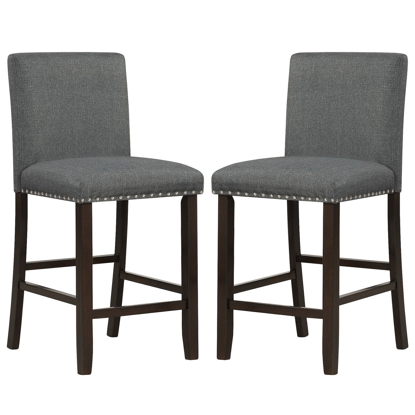 2 Pcs Linen Fabric Upholstered Bar Stools Armless Counter Height Chair Set Grey