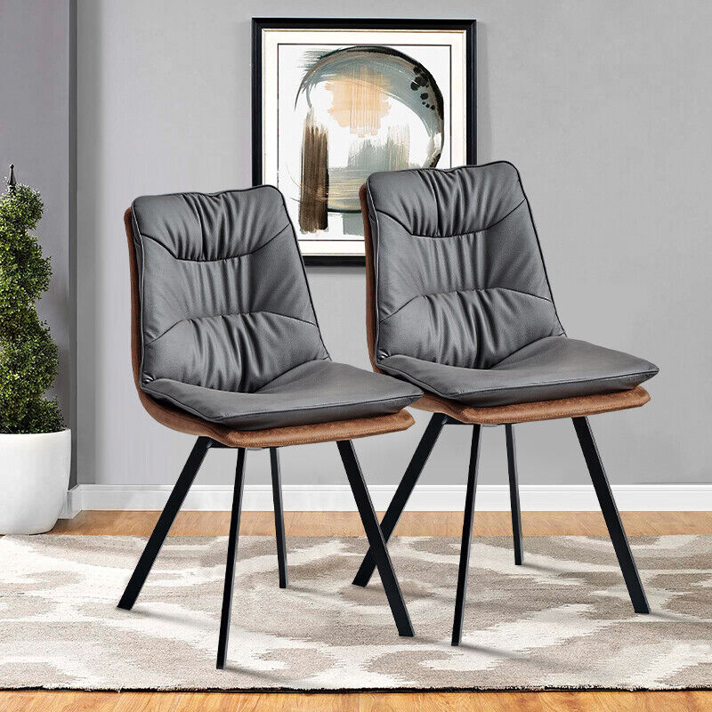 2 Pcs Mix Color Design Dining Chairs Faux Leather Padded w/ Metal Leg Resturant