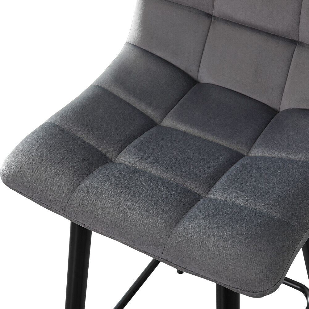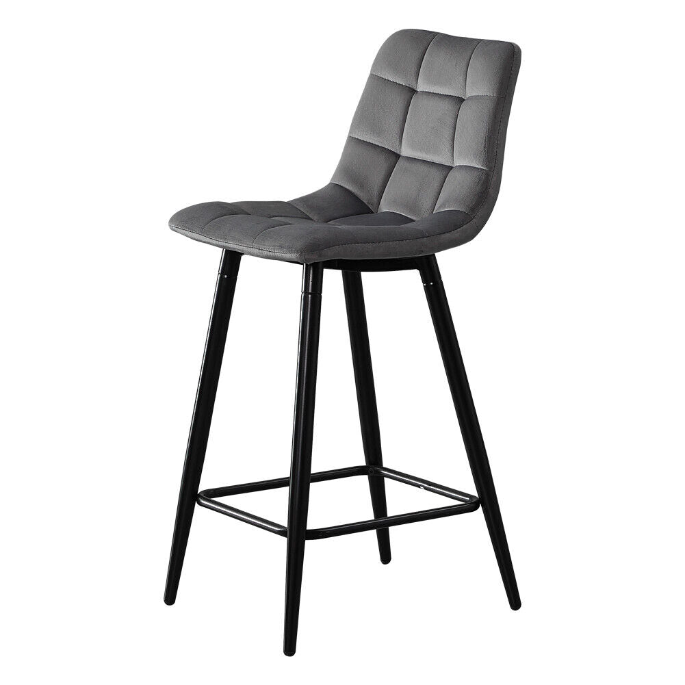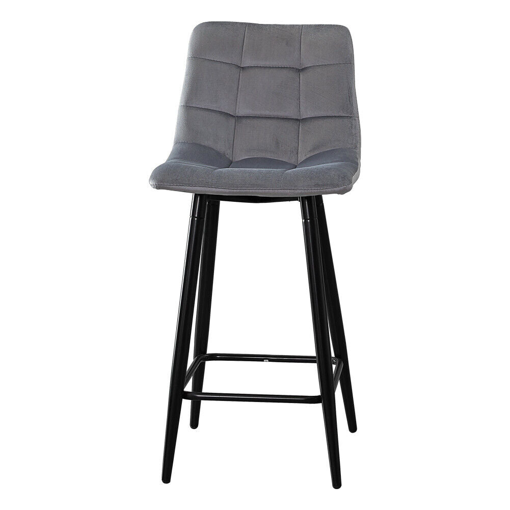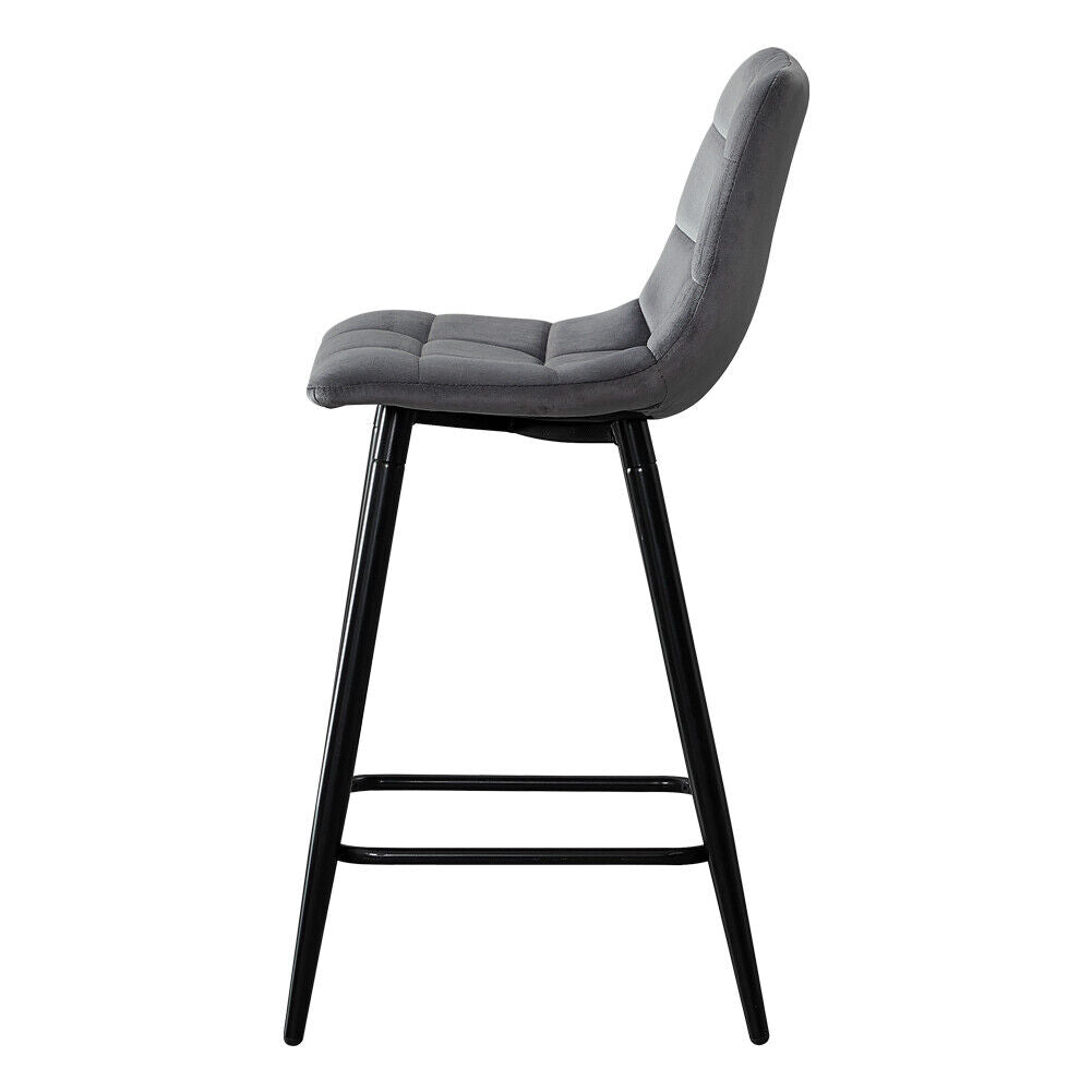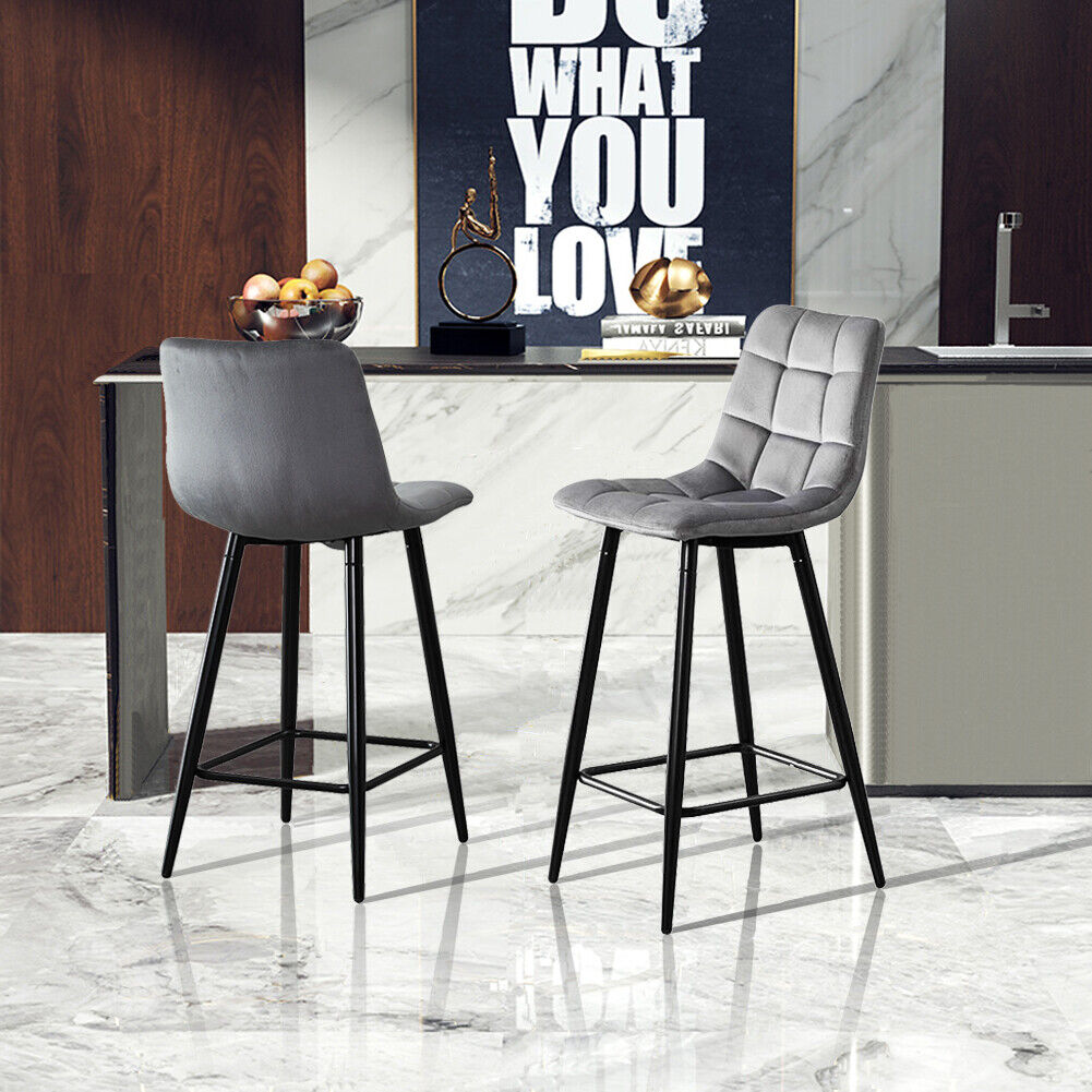 2 pcs Modern Grey Breakfast Bar Stools Velvet Padded Seat Metal Legs Kitchen Pub