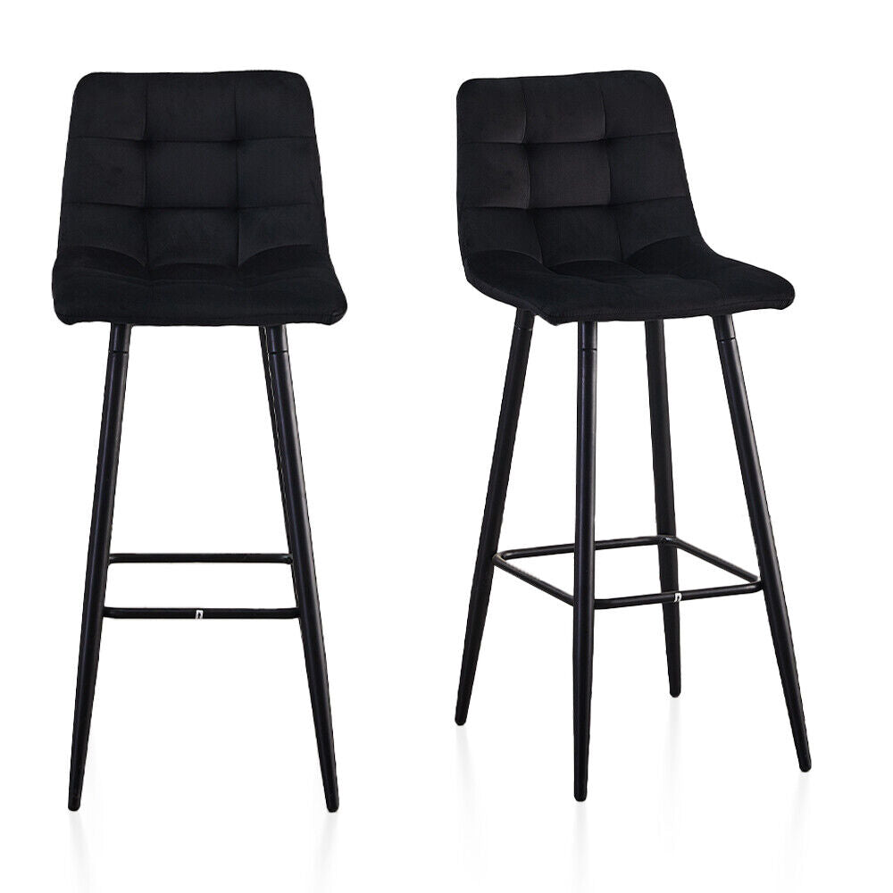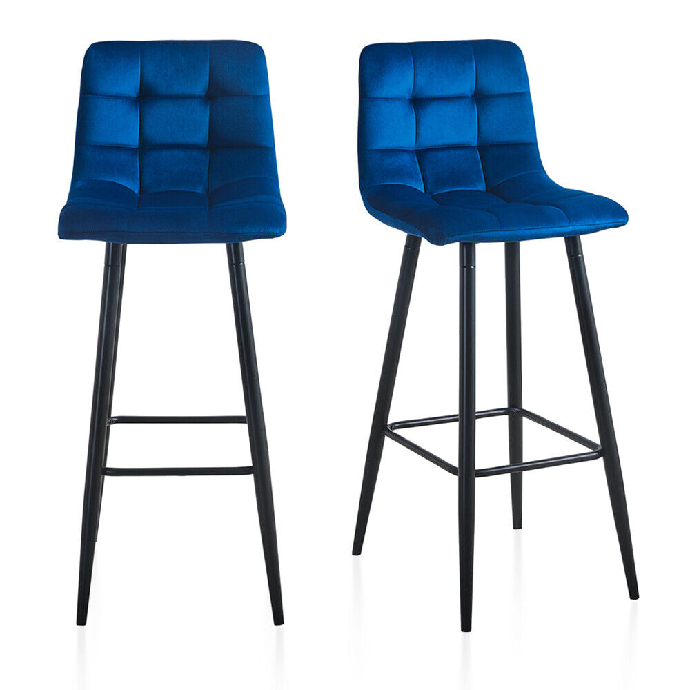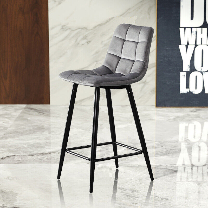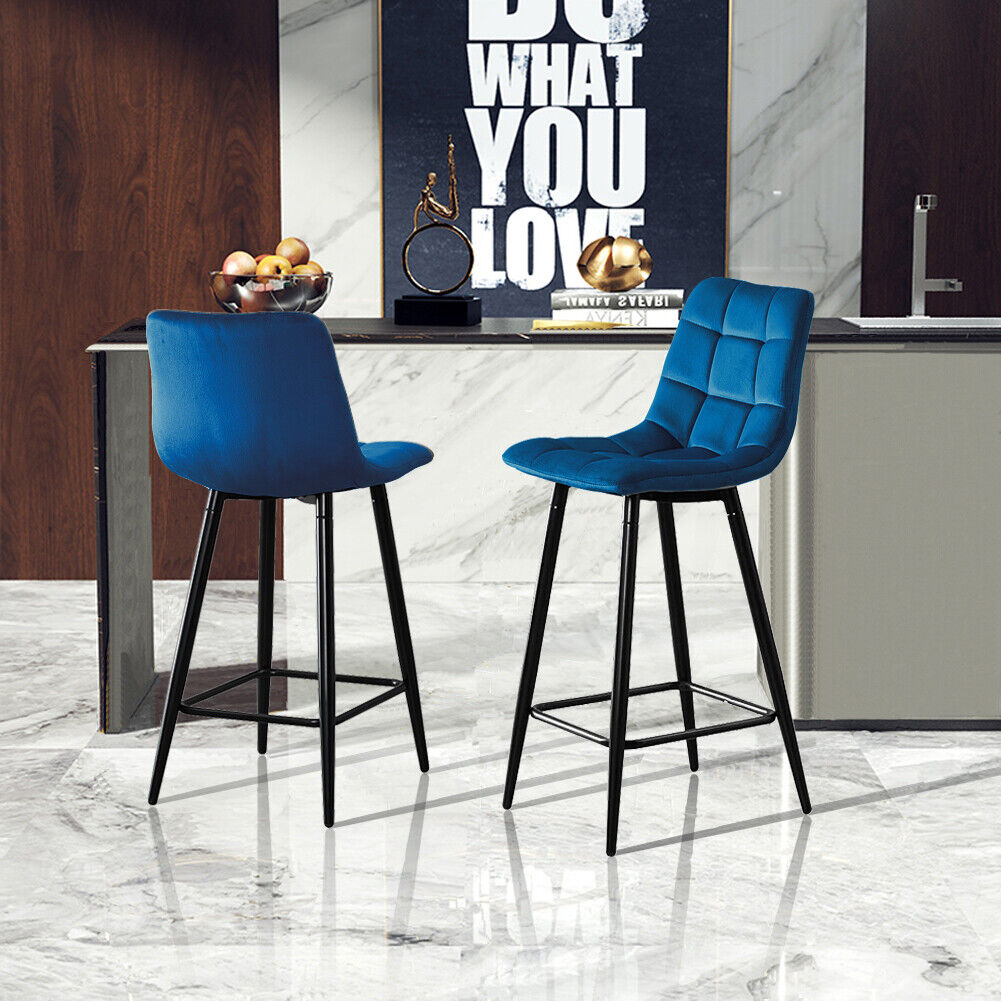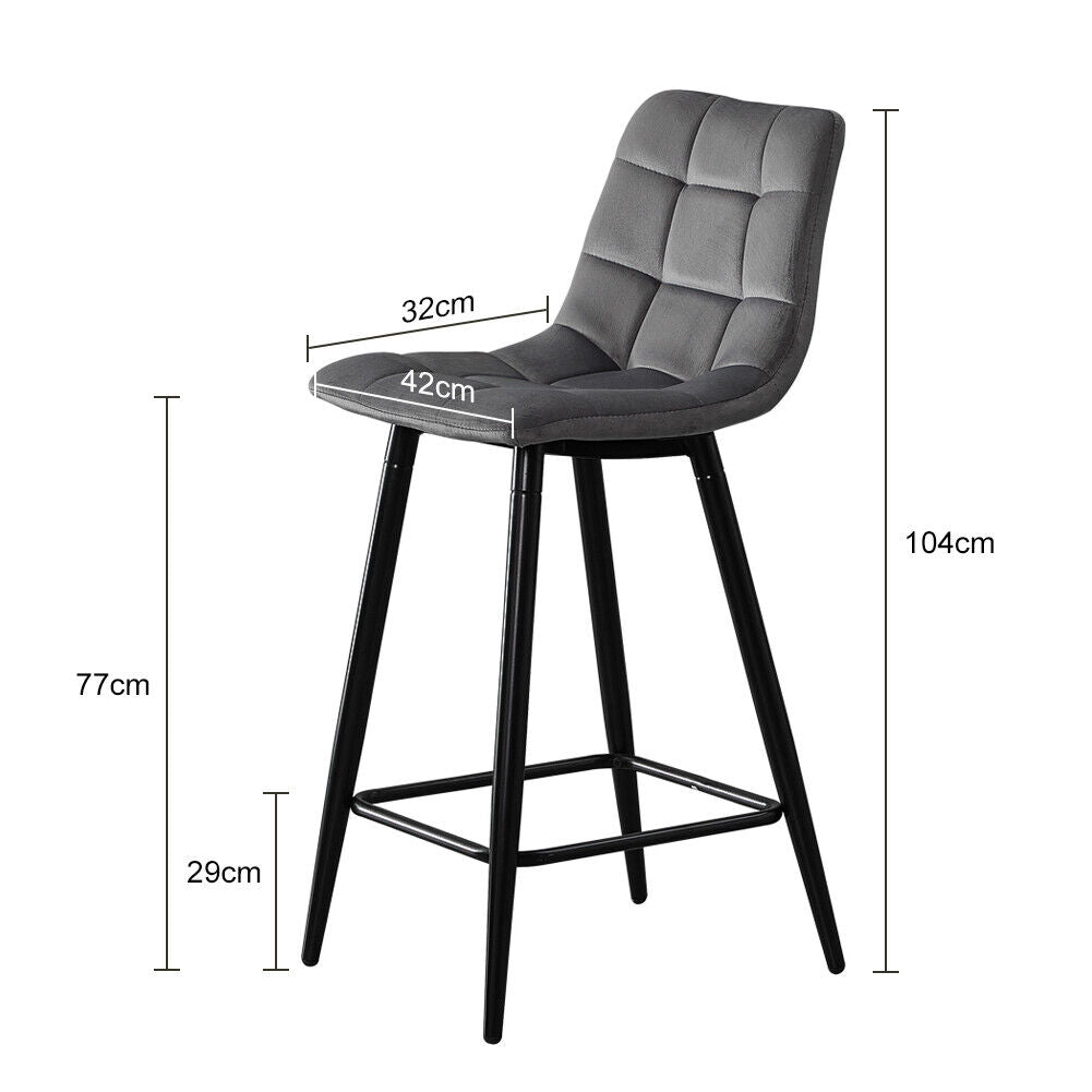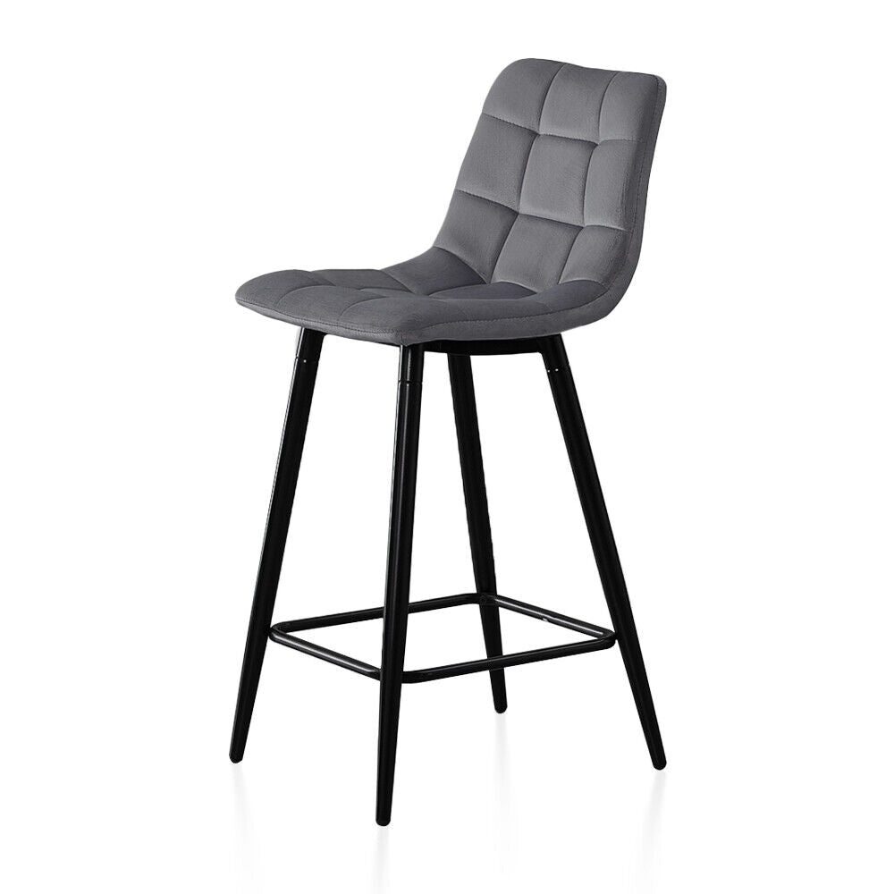2 pcs Modern Grey Breakfast Bar Stools Velvet Padded Seat Metal Legs Kitchen Pub