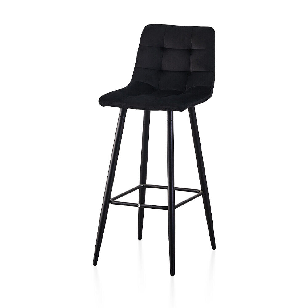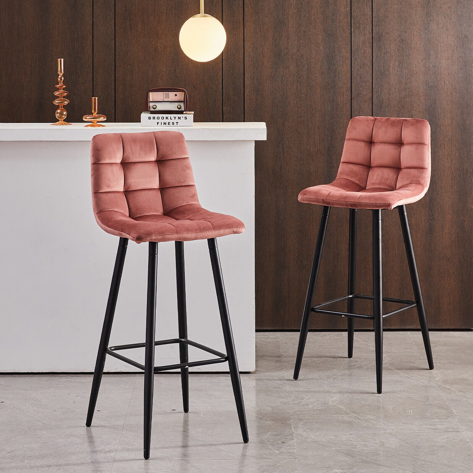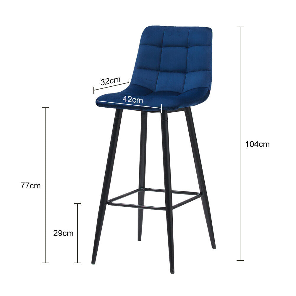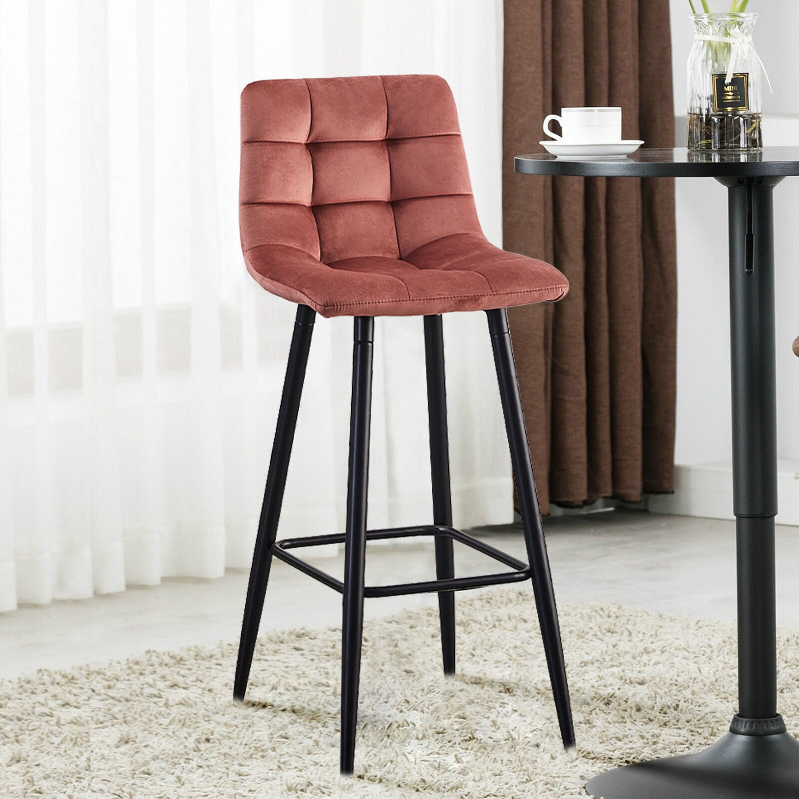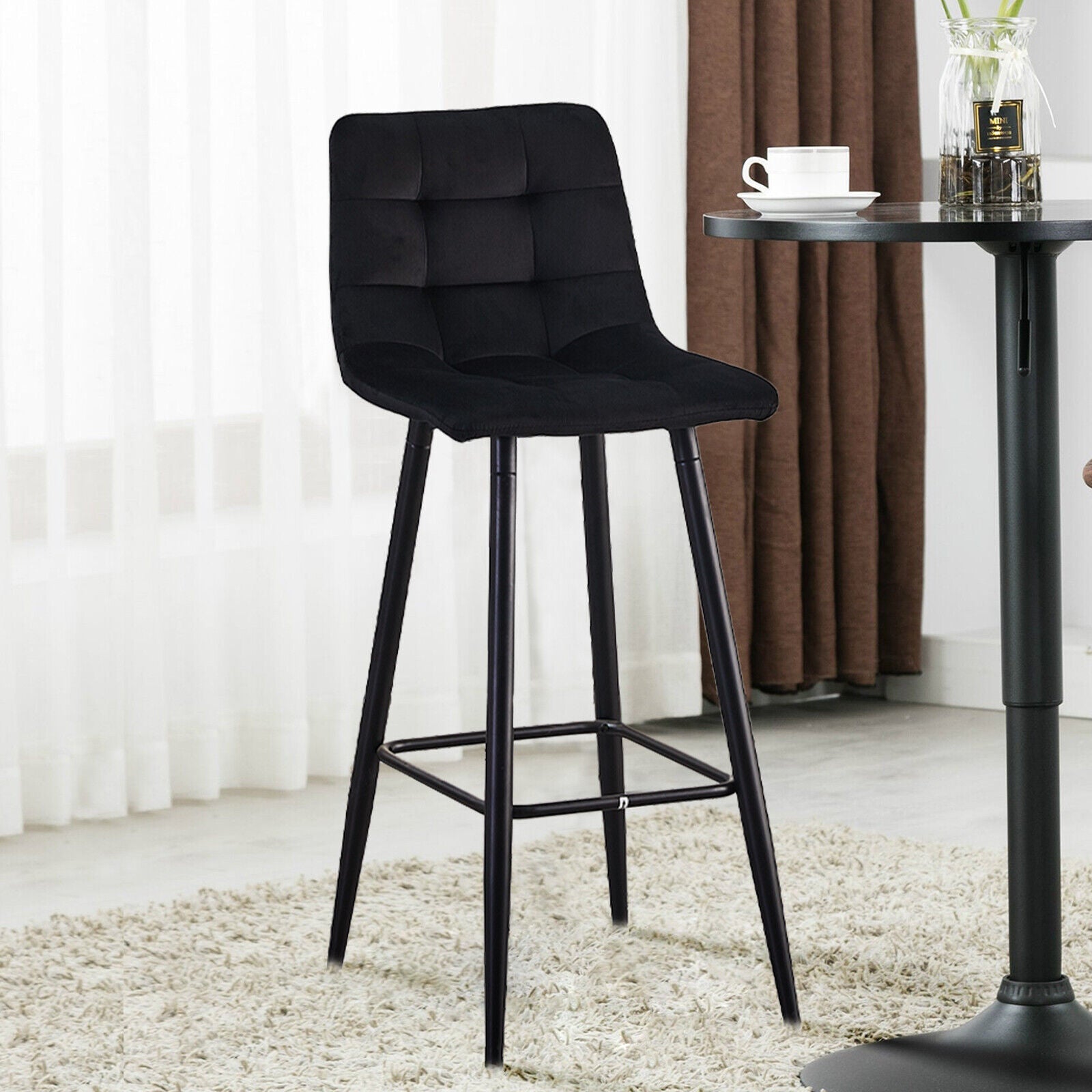 2 pcs Modern Grey Breakfast Bar Stools Velvet Padded Seat Metal Legs Kitchen Pub