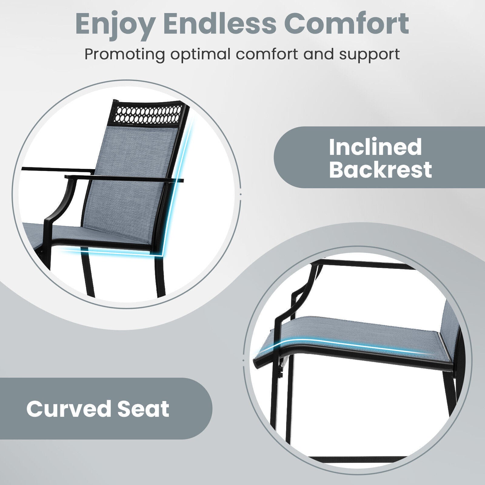 2 PCS Outdoor Patio Chair Fabric Bar Stool Metal Frame Counter Height Chairs