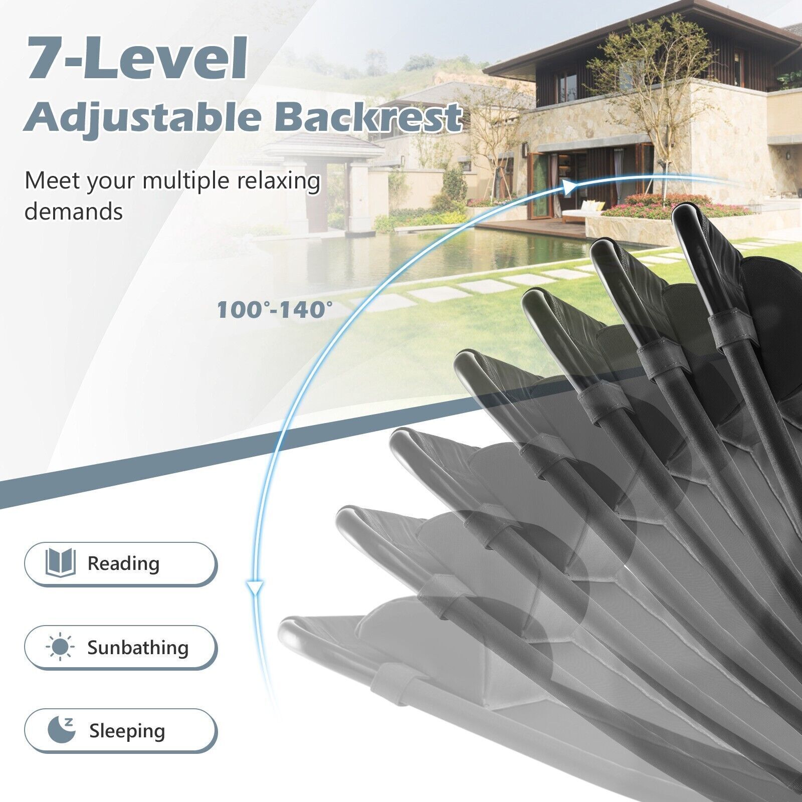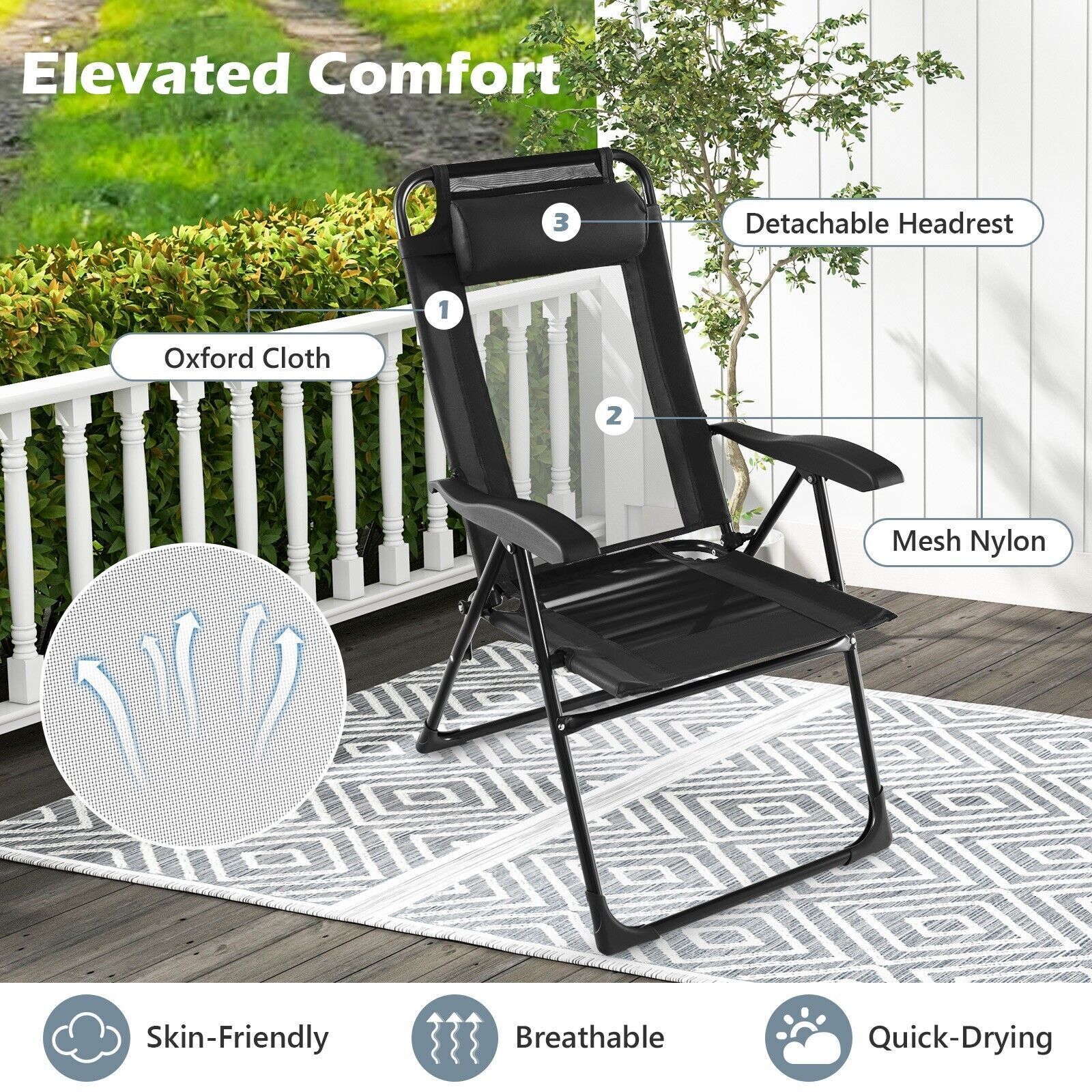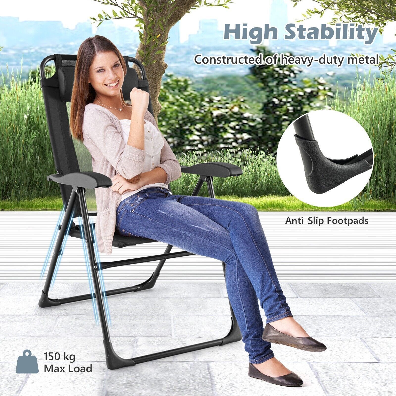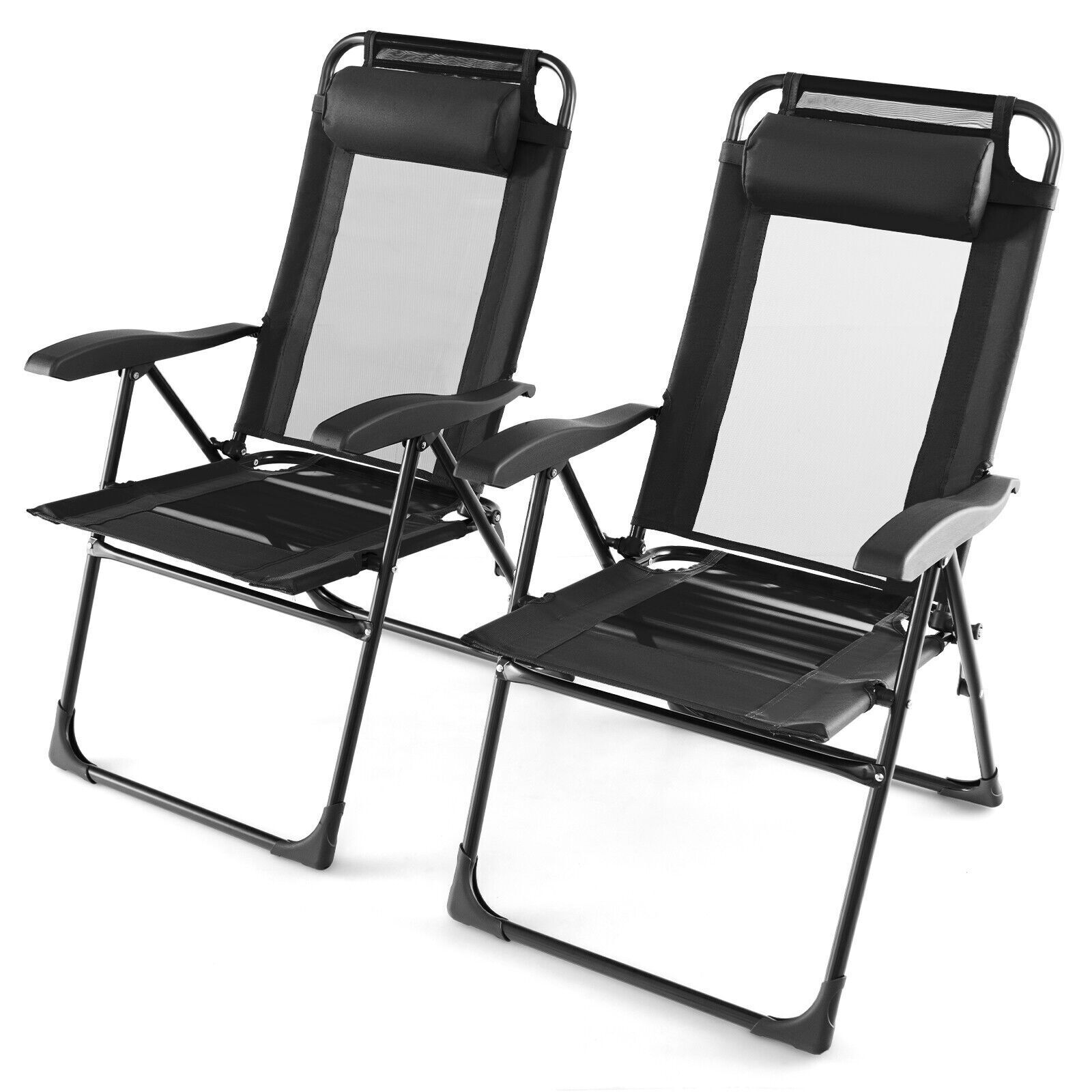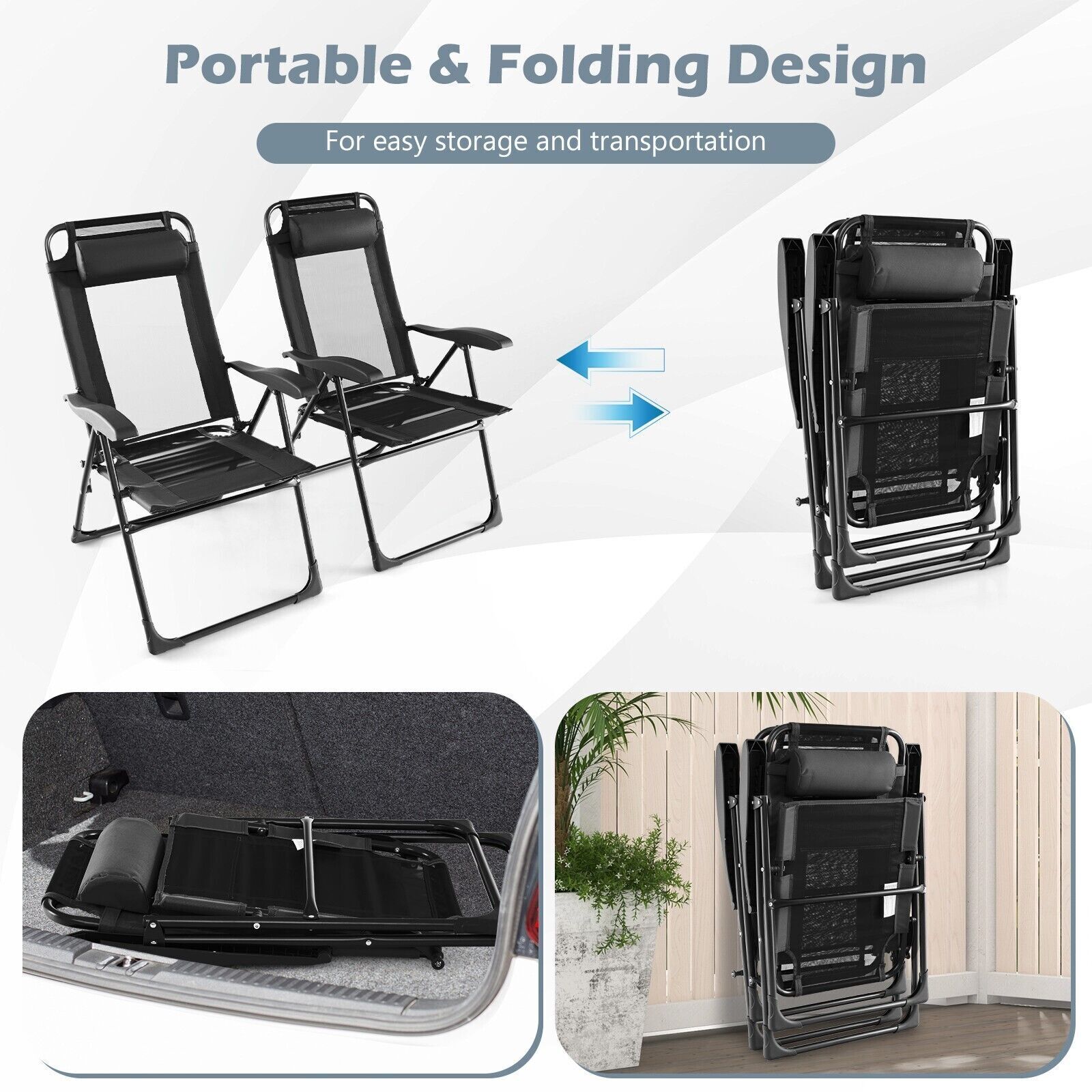 2 Pcs Patio Folding Camping Chairs Outdoor Reclining Chairs Lounge Chairs Black