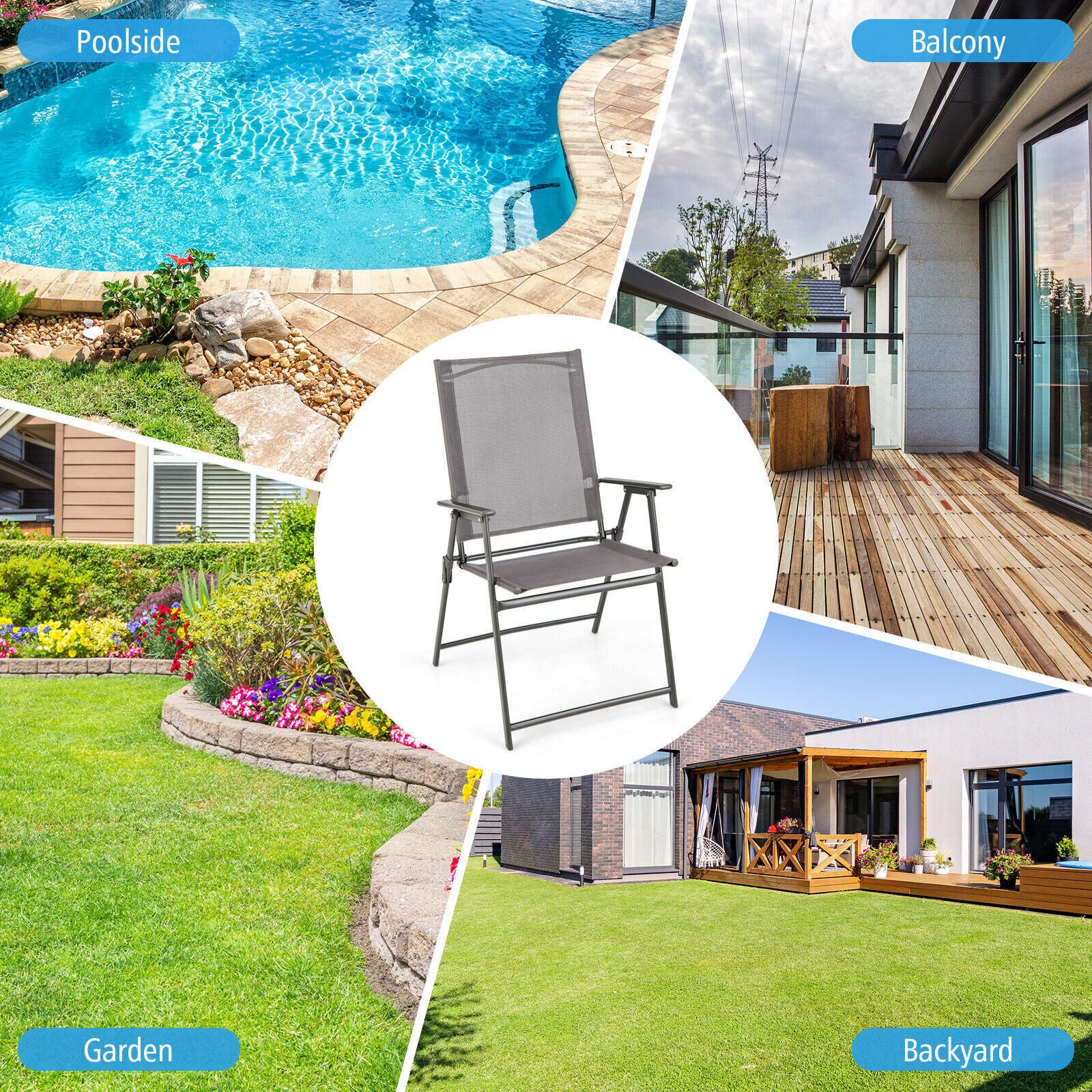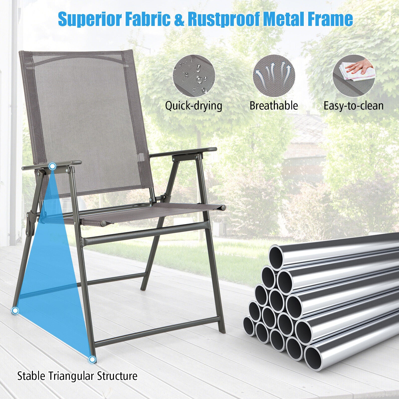 2 Pcs Patio Folding Chairs Outdoor Portable High Back Dining Chairs w/Armrests
