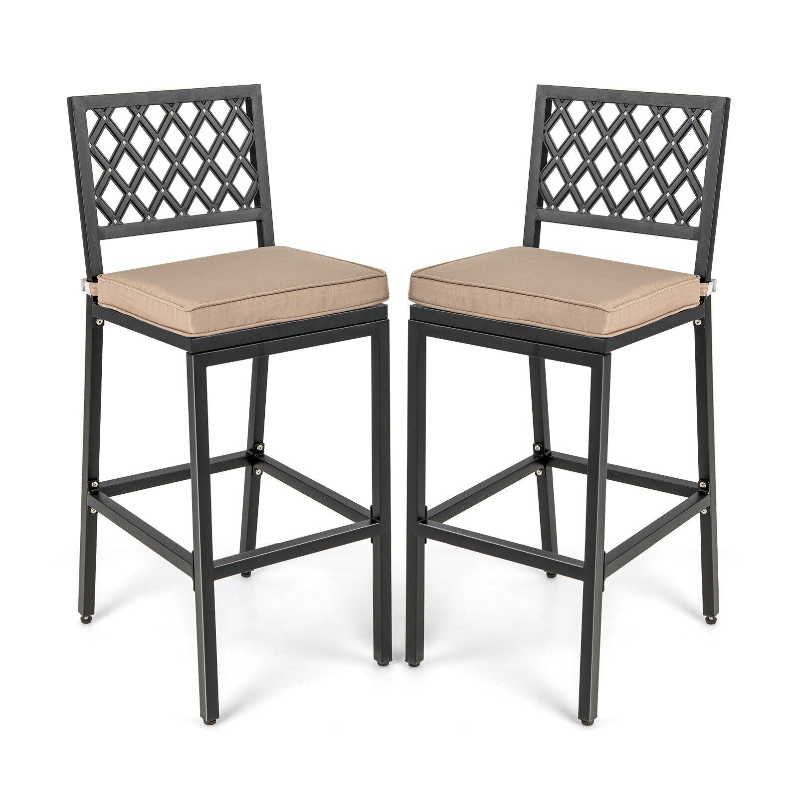 2 PCS Pub Bar Chairs Barstools Metal Frame Garden Patio Dining Chairs w/Cushions