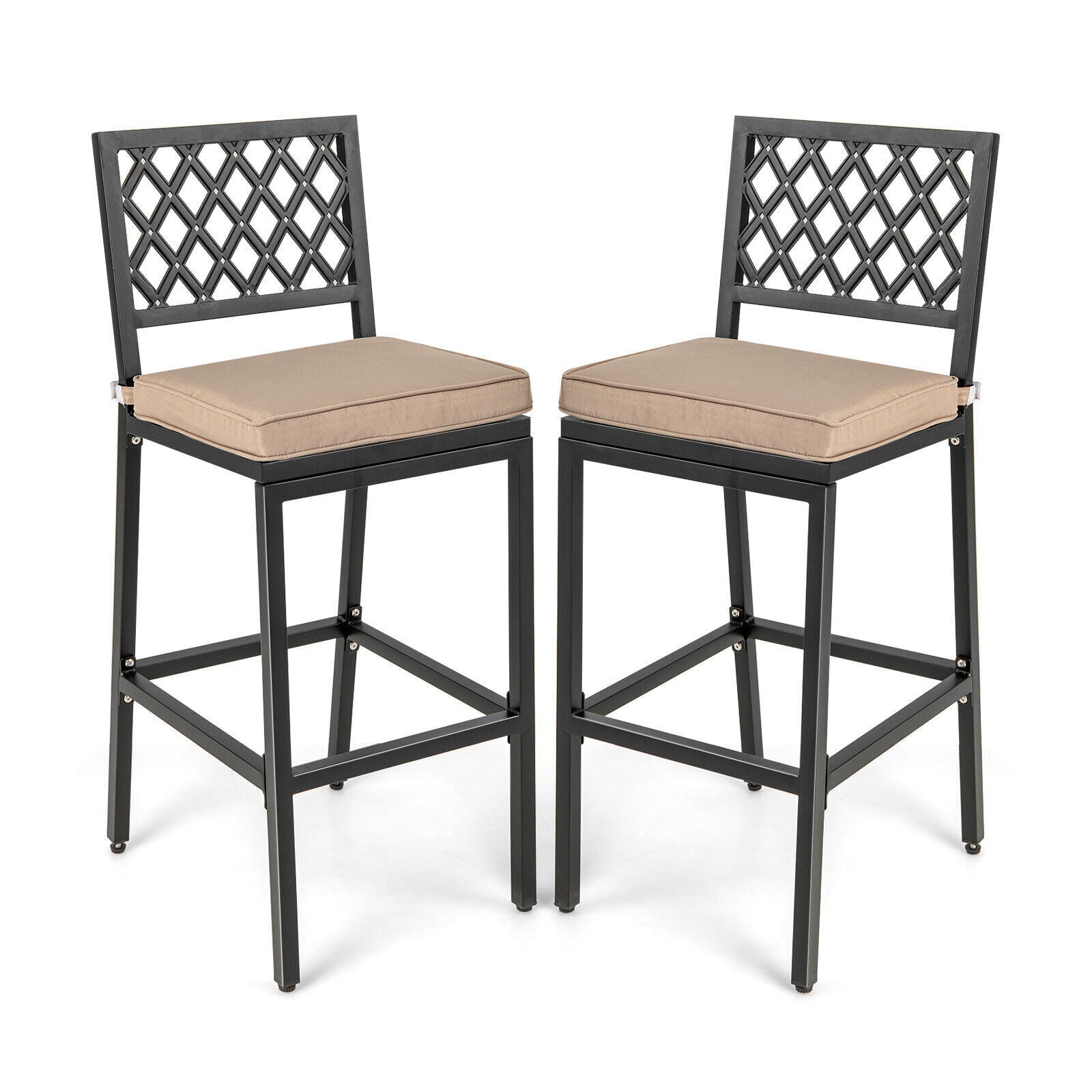 2 PCS Pub Bar Chairs Barstools Metal Frame Garden Patio Dining Chairs w/Cushions