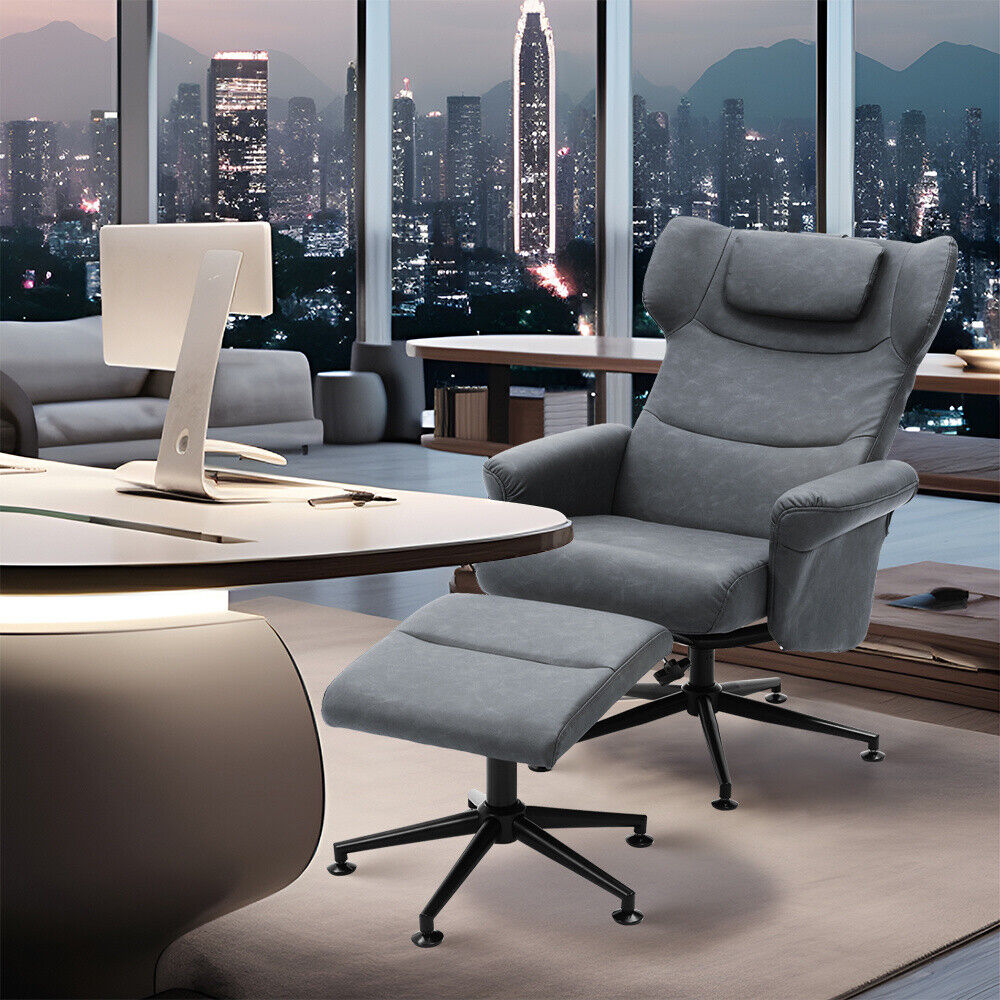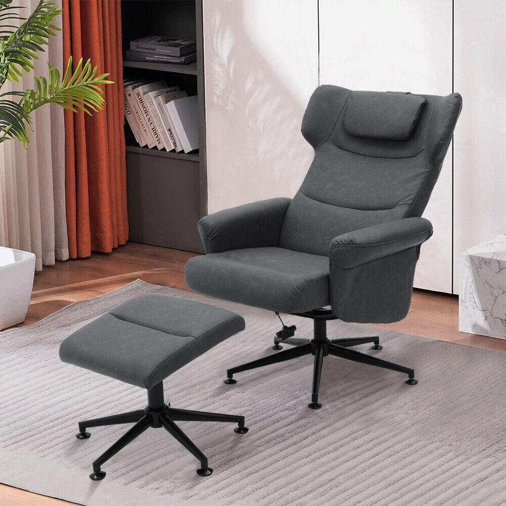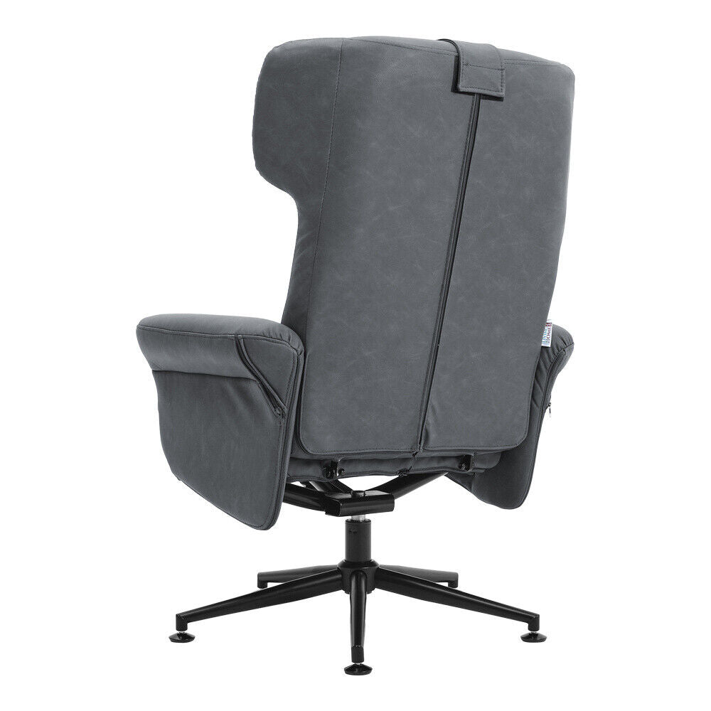 2 Pcs Reclining Armchair with Ottoman Set Swivel Home Furniture PU Leather Grey