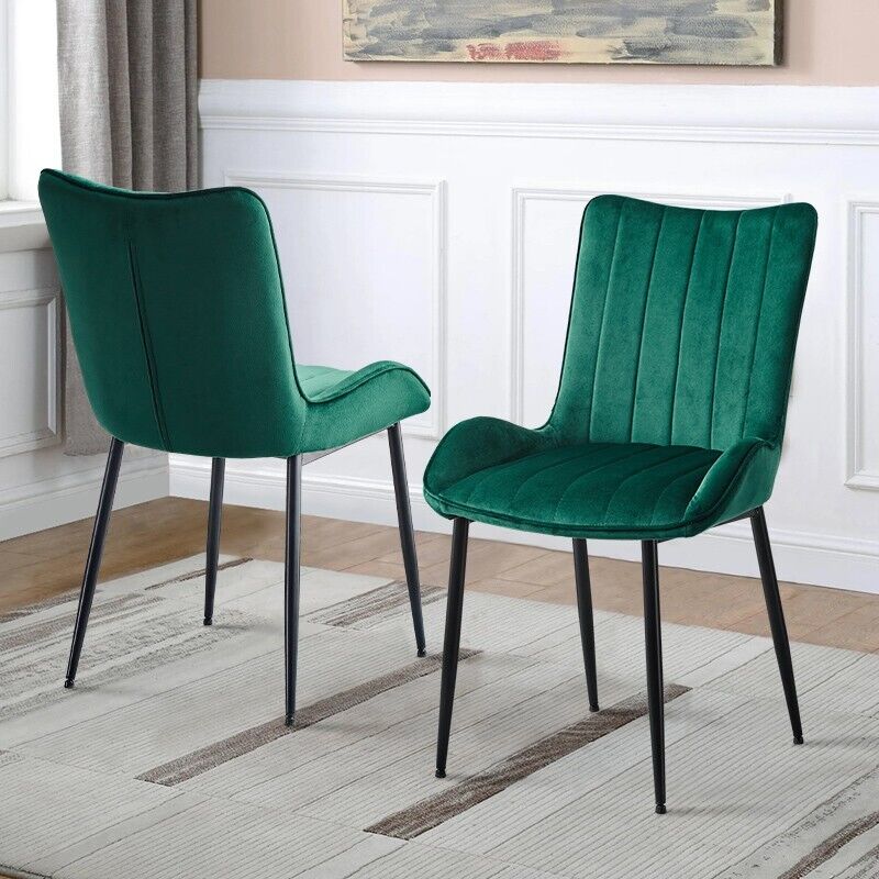 2 Pcs Velvet Dining Chair Modern Padded Seat Breakfast Chair Dining Room Green
