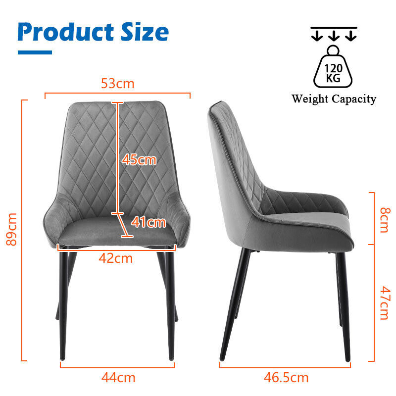 2 Pcs Velvet Dinning Chair High Back Metal Legs High Elastic Filing Comfortable
