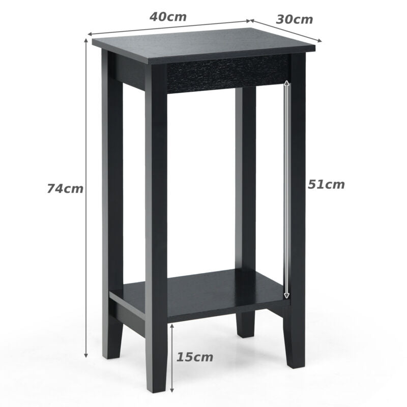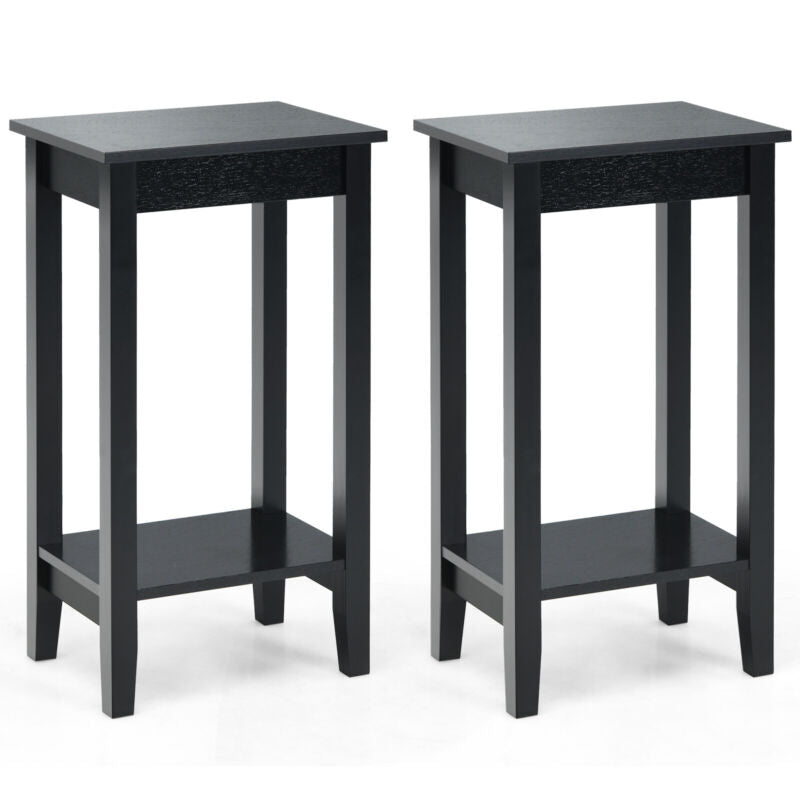2 PCS Versatile 2-Tier Tall Side Table End Table Narrow Beside Storage Table
