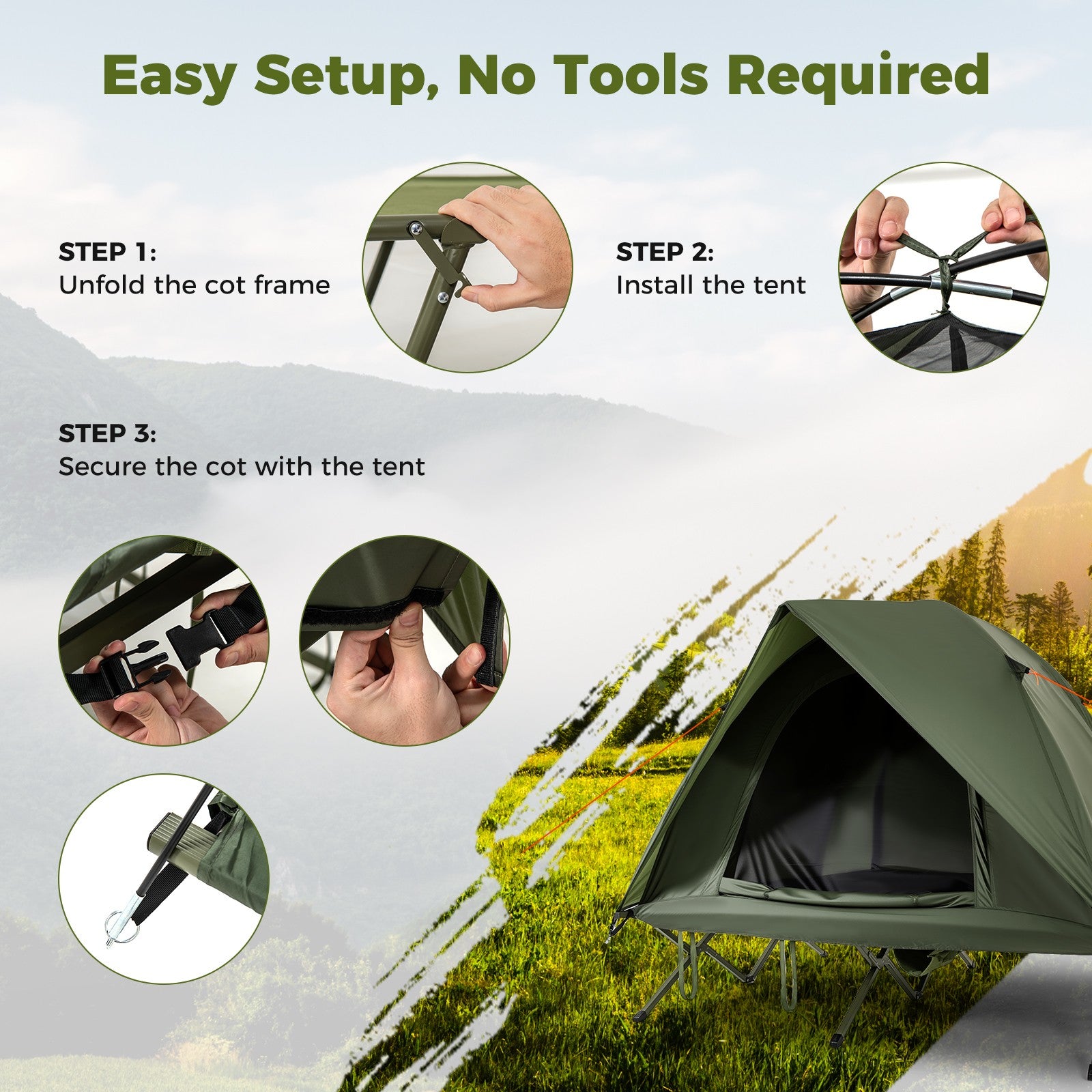 2-Person Camping Cot Tent Foldable Camping Combo w/ Tent Shelter