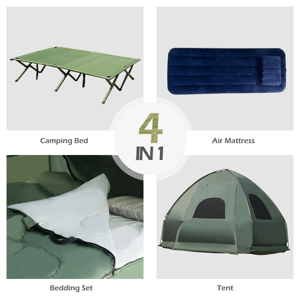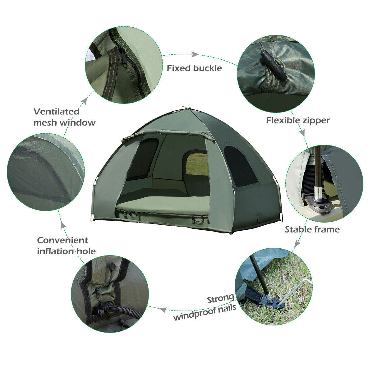 2-Person Tent Cot Folding Camp Tent Outdoor Hiking Bed Air Mattress Sleeping Bag