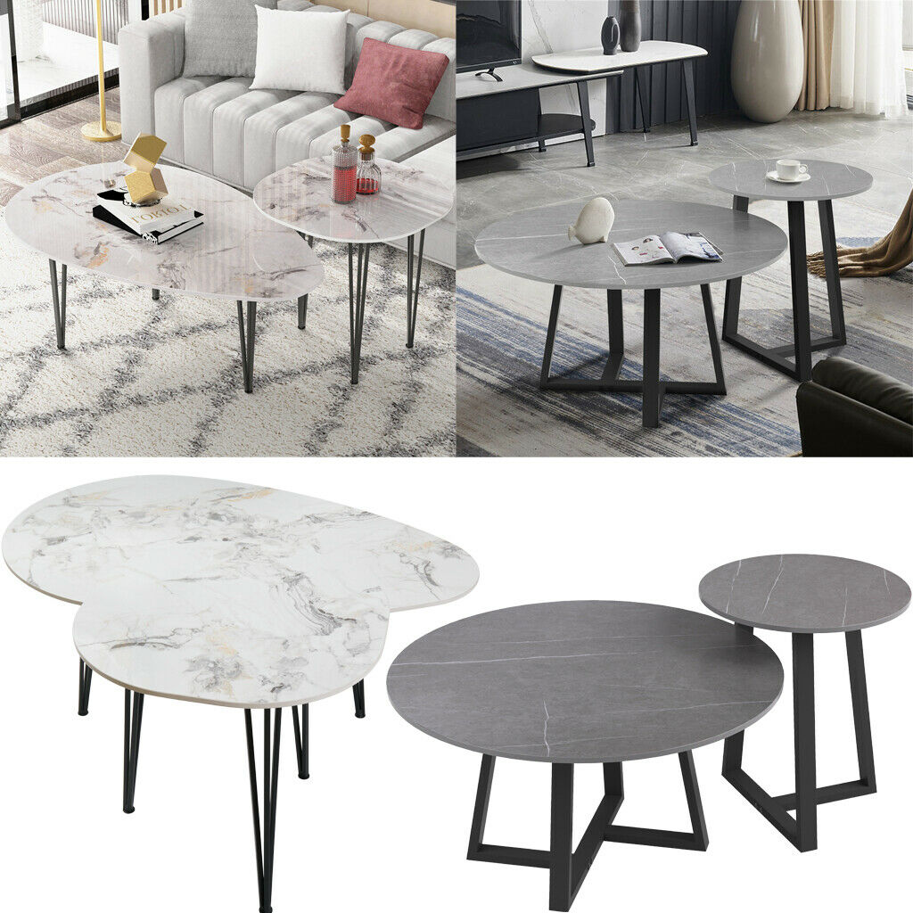 2 Piece Coffee Table Marble Side End Tables Sintered Stone Couch Nested Tables