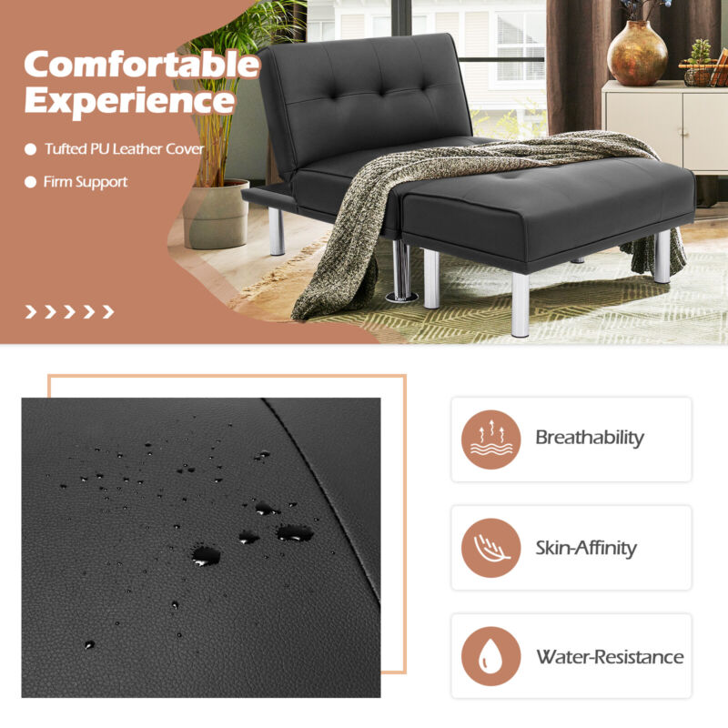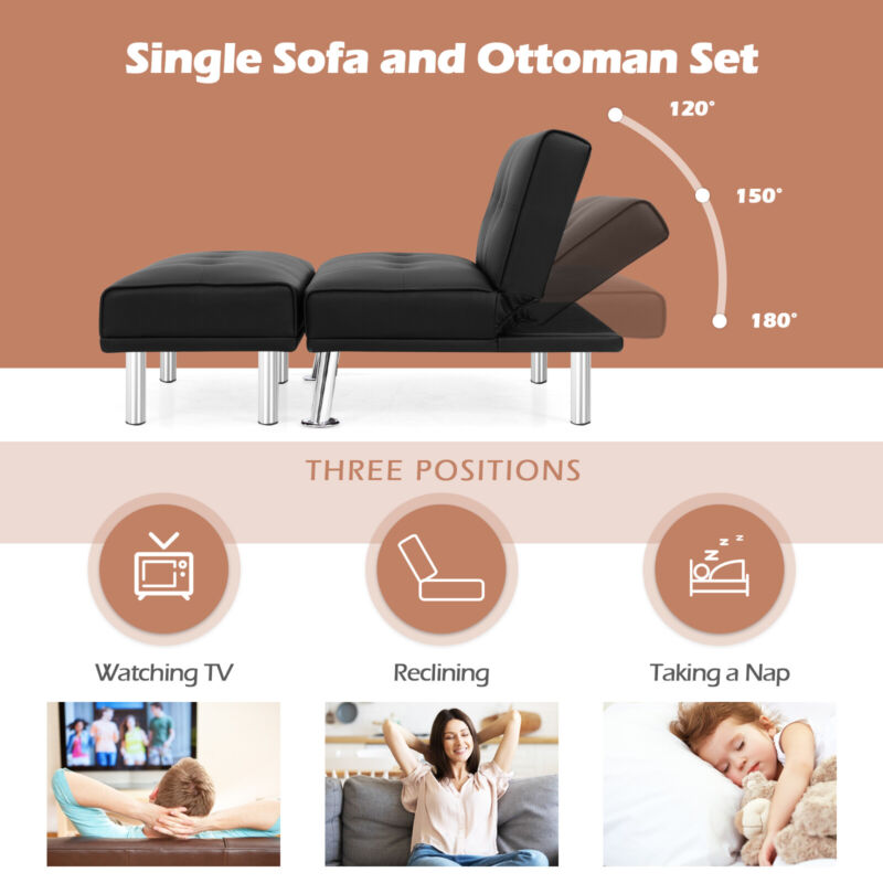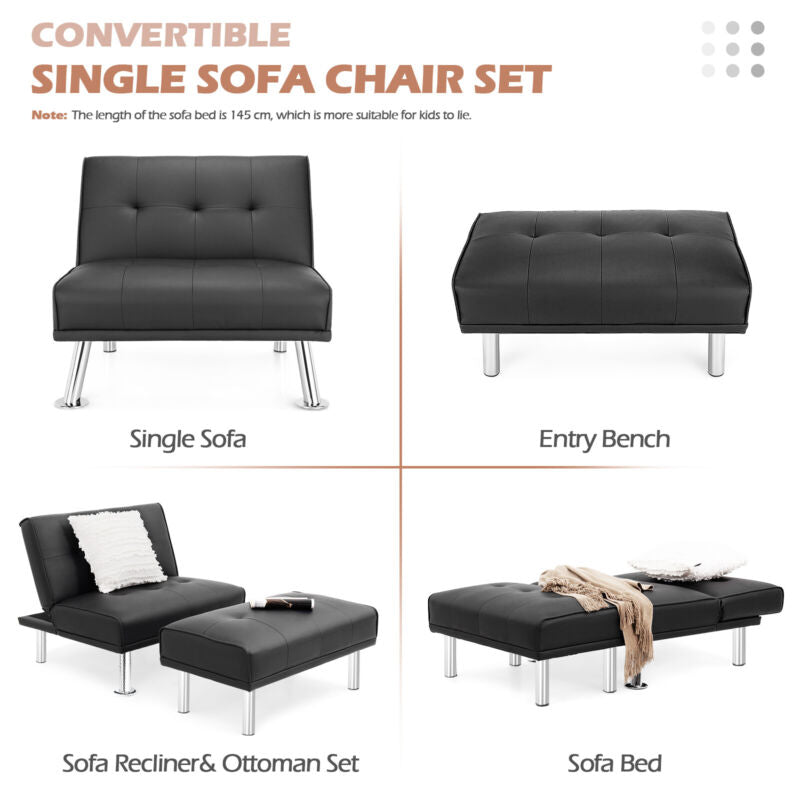 Condition: New: A brand-new, unused, unopened and undamaged item in original retail packaging (where packaging ... Colour: Black Department: Adult Item Height: 78cm Item Width: 75cm Assembly Required: Yes Fill Material: Sponge Pattern: soild Type: Sofa Set Upholstery Fabric: PU Seating Capacity: 1 Item Weight: 22.5kg Brand: Costway Style: morden Product Line: FDS Features: Convertible backrest (120°, 150°, 180°) Item Length: 86cm Back Style: Modern Frame Material: Pine Wood, Stainless Steel Room: Bedroom, Living Room Sleeper Size: Single Frame Colour: Silver