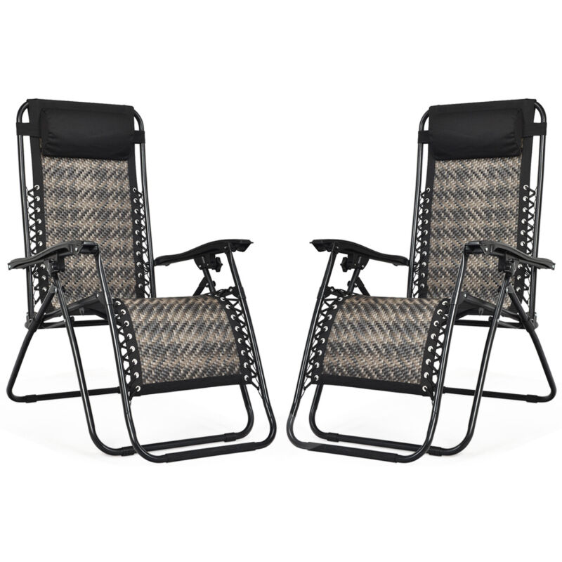 2 Pieces Foldable Zero Gravity Reclining Garden Patio Deck Chair Sun Lounger