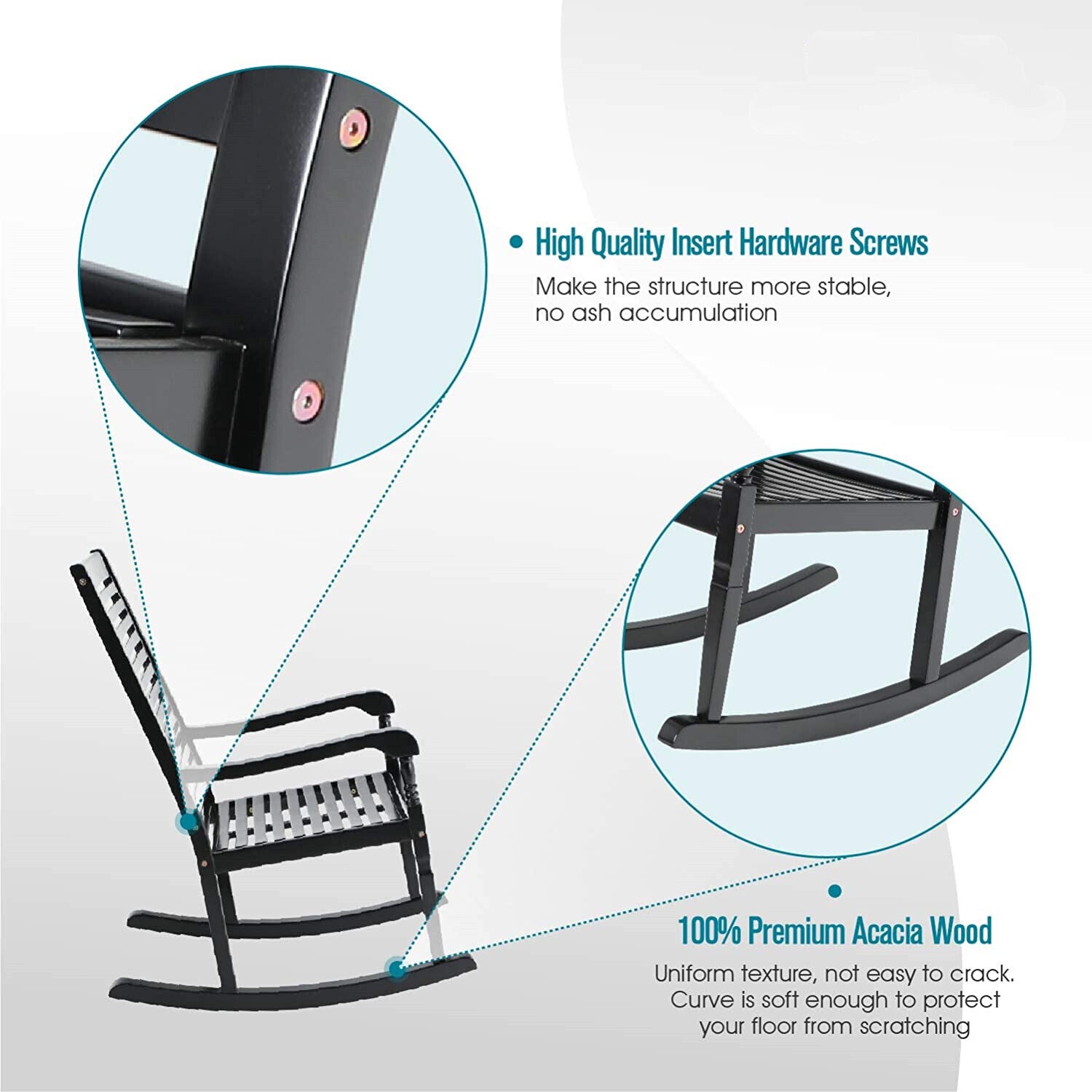 2 Pieces Heavy Duty Rocking Chair Wood SEAT Living Room Indoor Outdoor Furniture