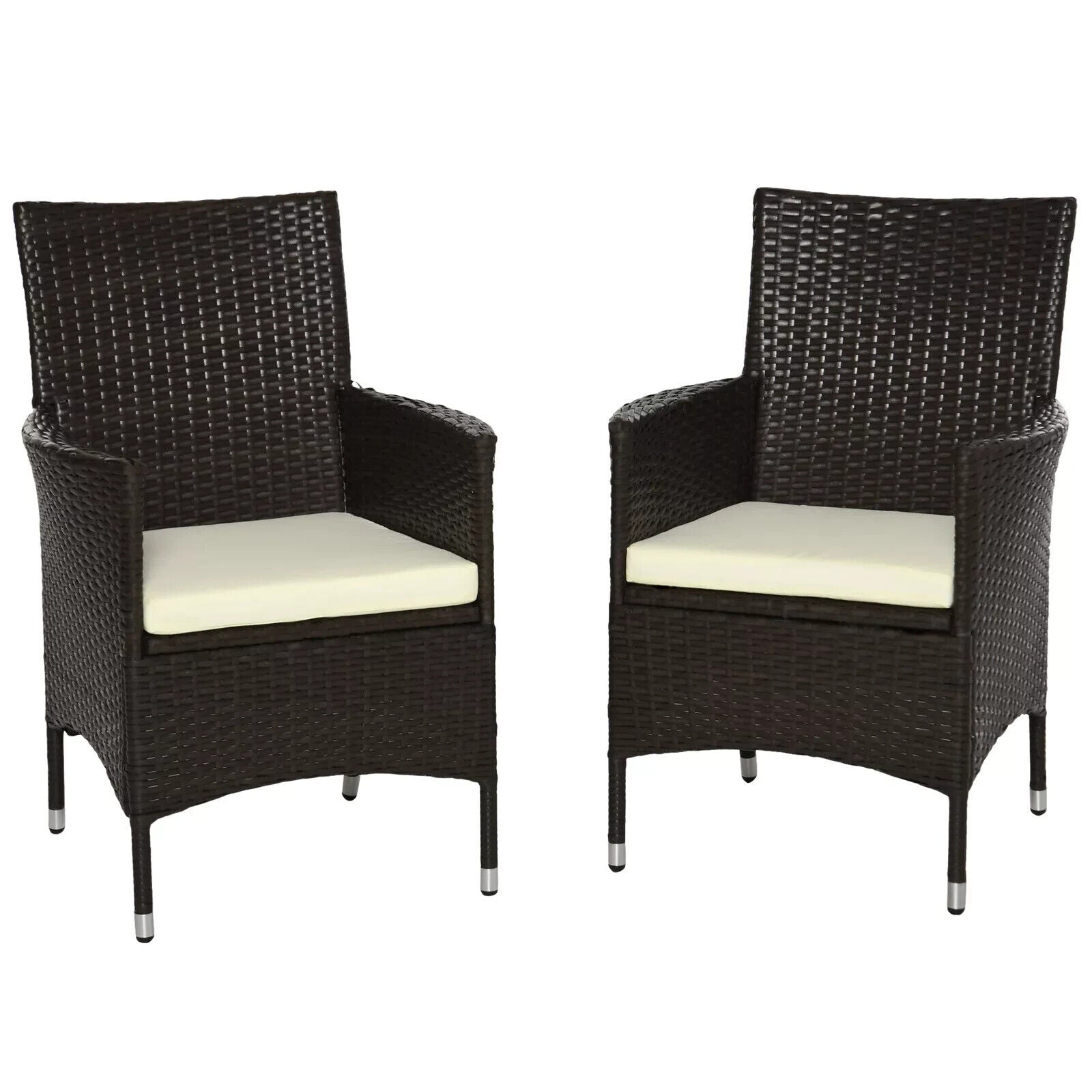 2 Pieces Outdoor Rattan Armchair Garden Dining Chair Set Coffee