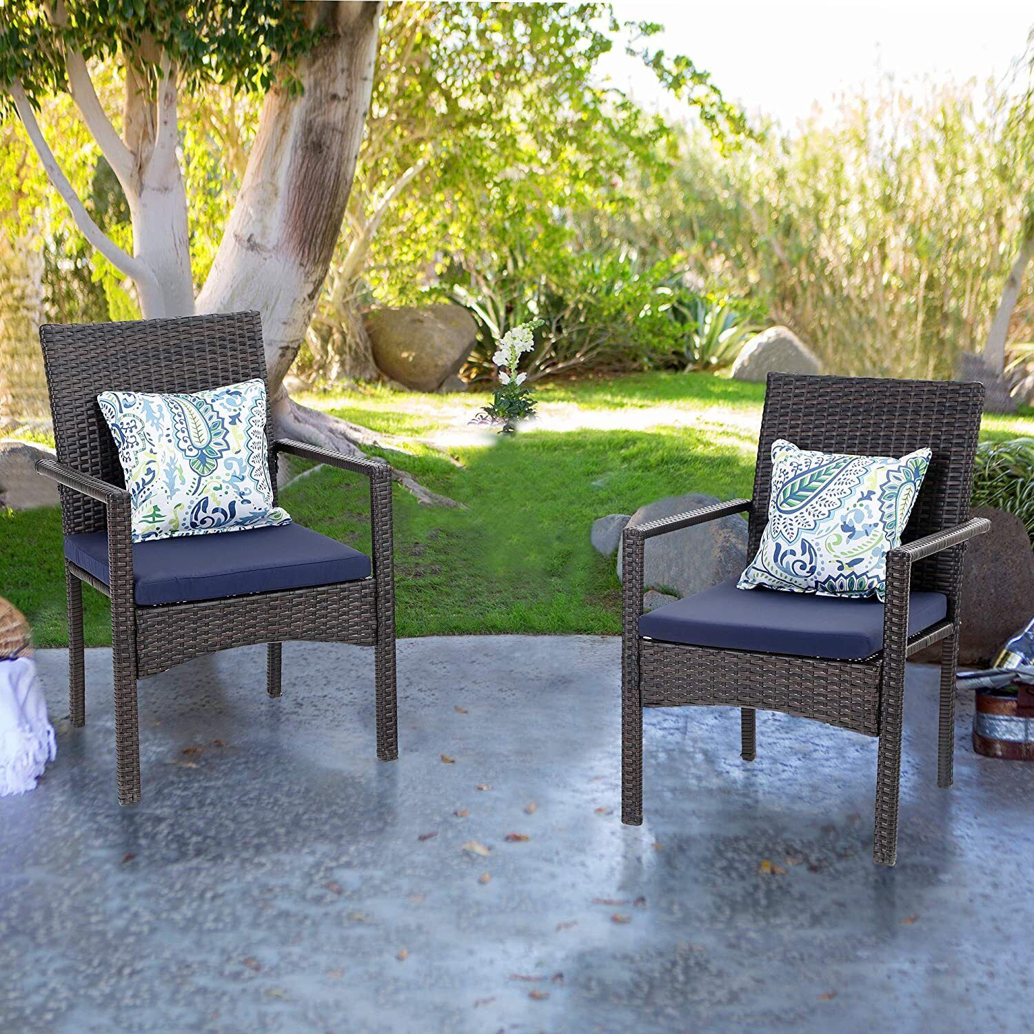 2 Pieces Rattan Chair Garden Furniture Wicker Patio Chairs Outdoor With Cushion