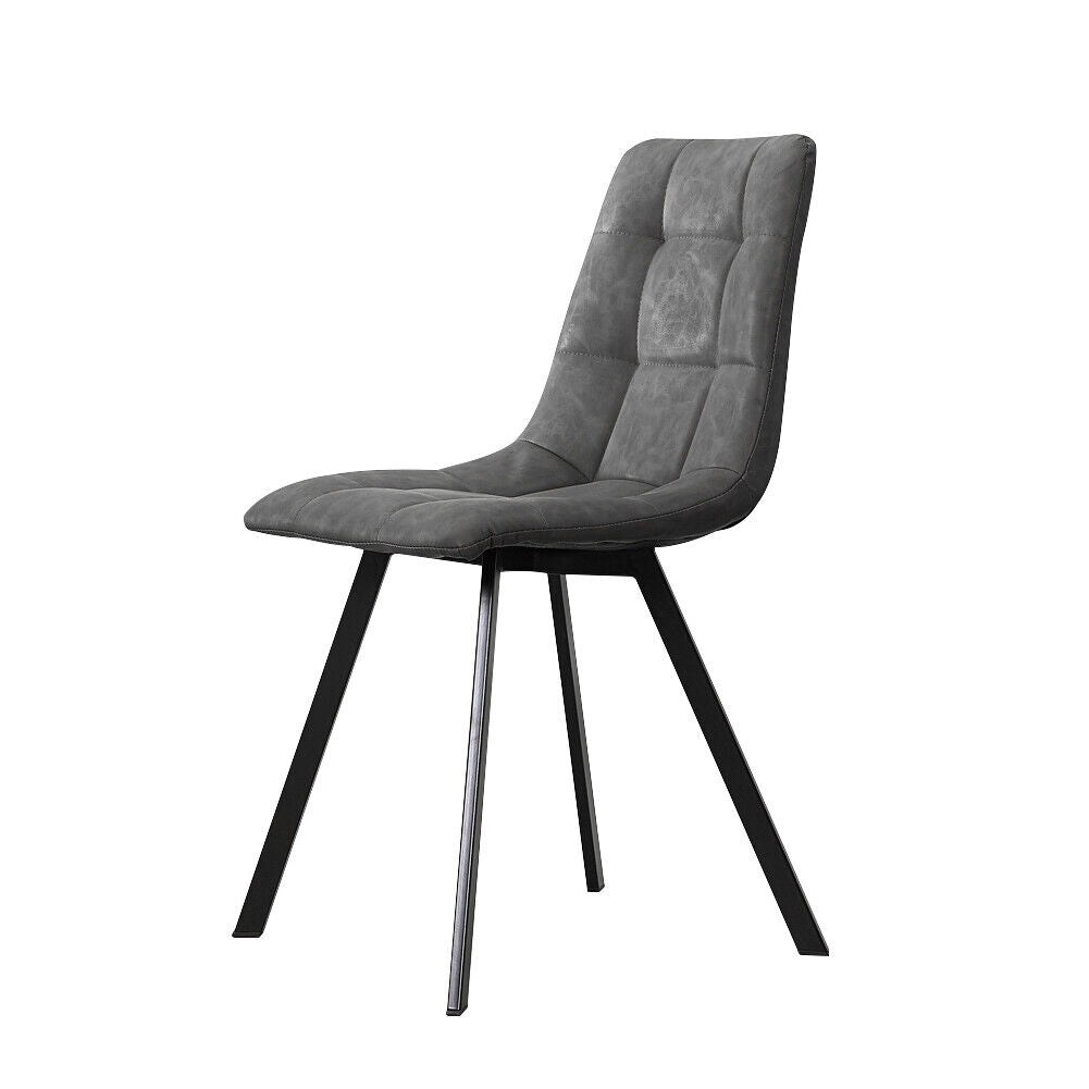 2 PU Faux Leather Dining Chairs Grey Rectangle Metal Legs Dining Room Chairs
