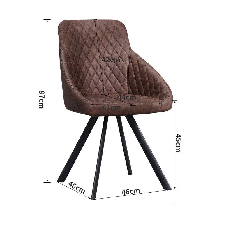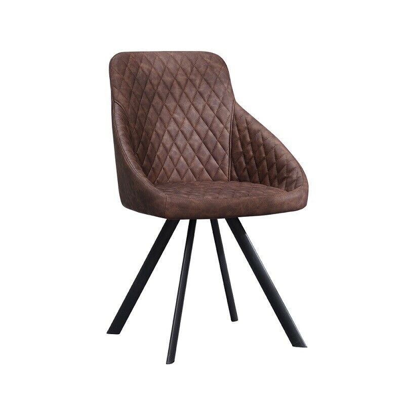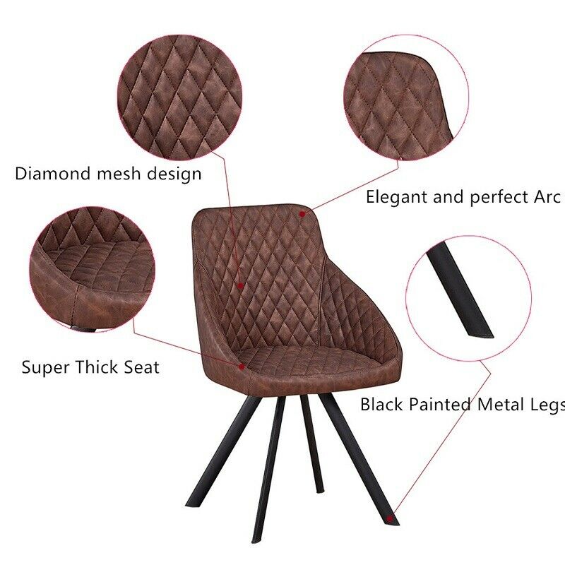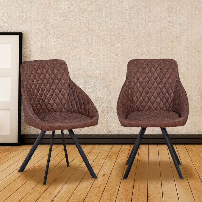 2* Retro Brown Dining Chairs Faux Leather/PU Kitchen Chairs Diamond Design