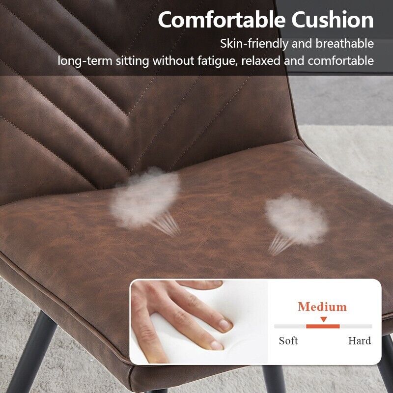 2 Retro Faux Leather Dining Chairs BrownV Stripe Seat Metal Leg Chairs High Back