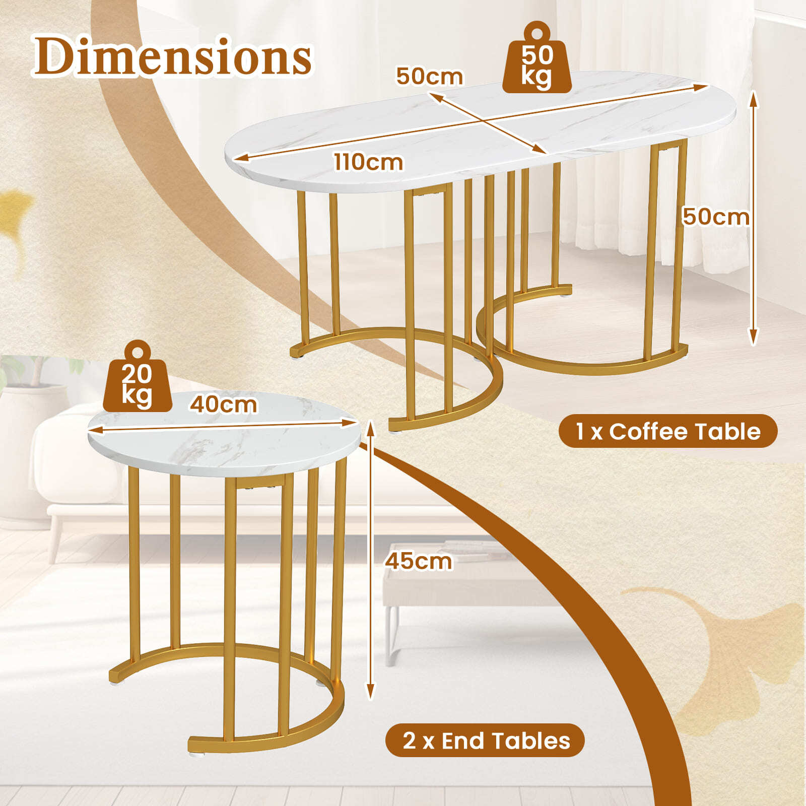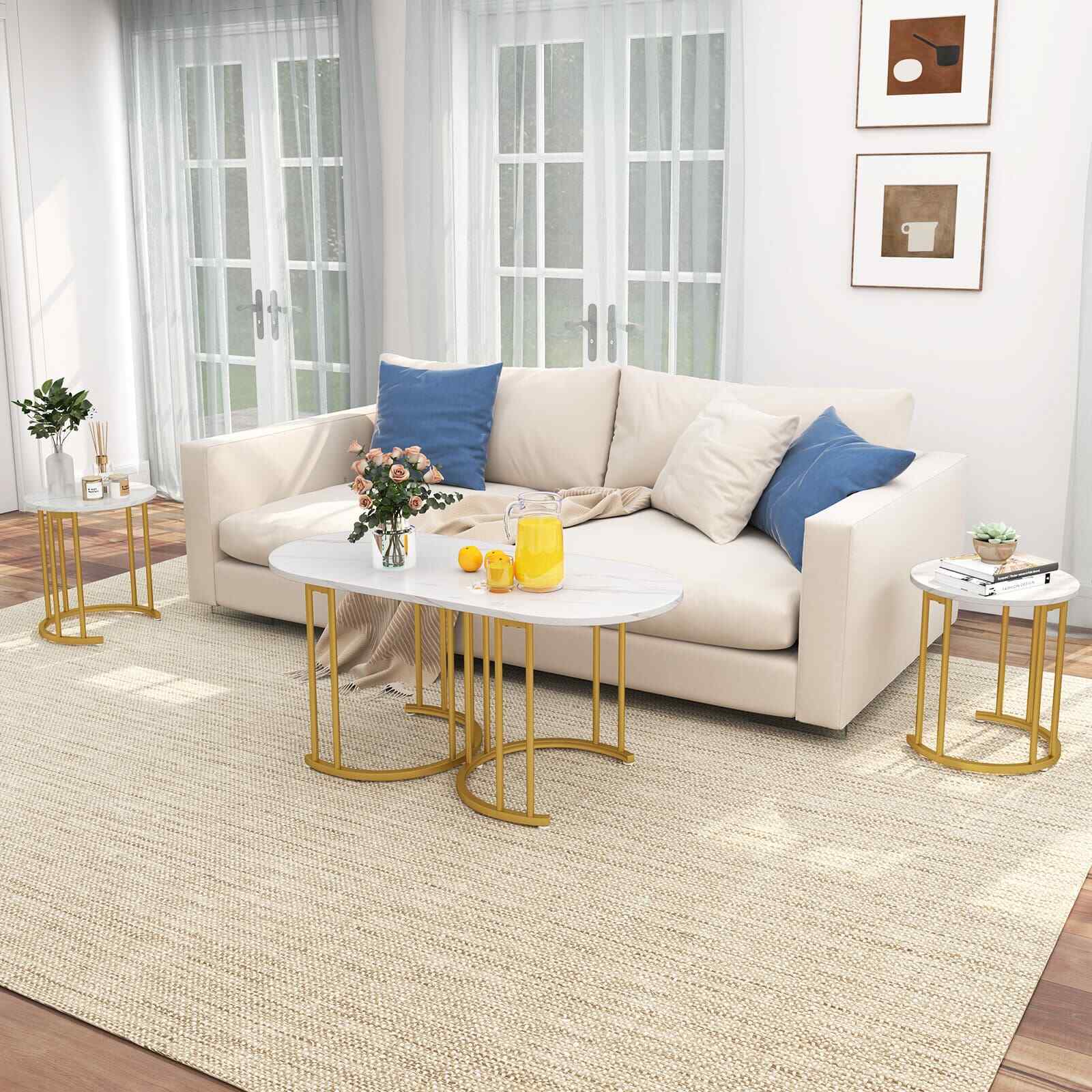 2 Round End Tables and Oval Coffee Table Nesting Coffee Table Set of 3White