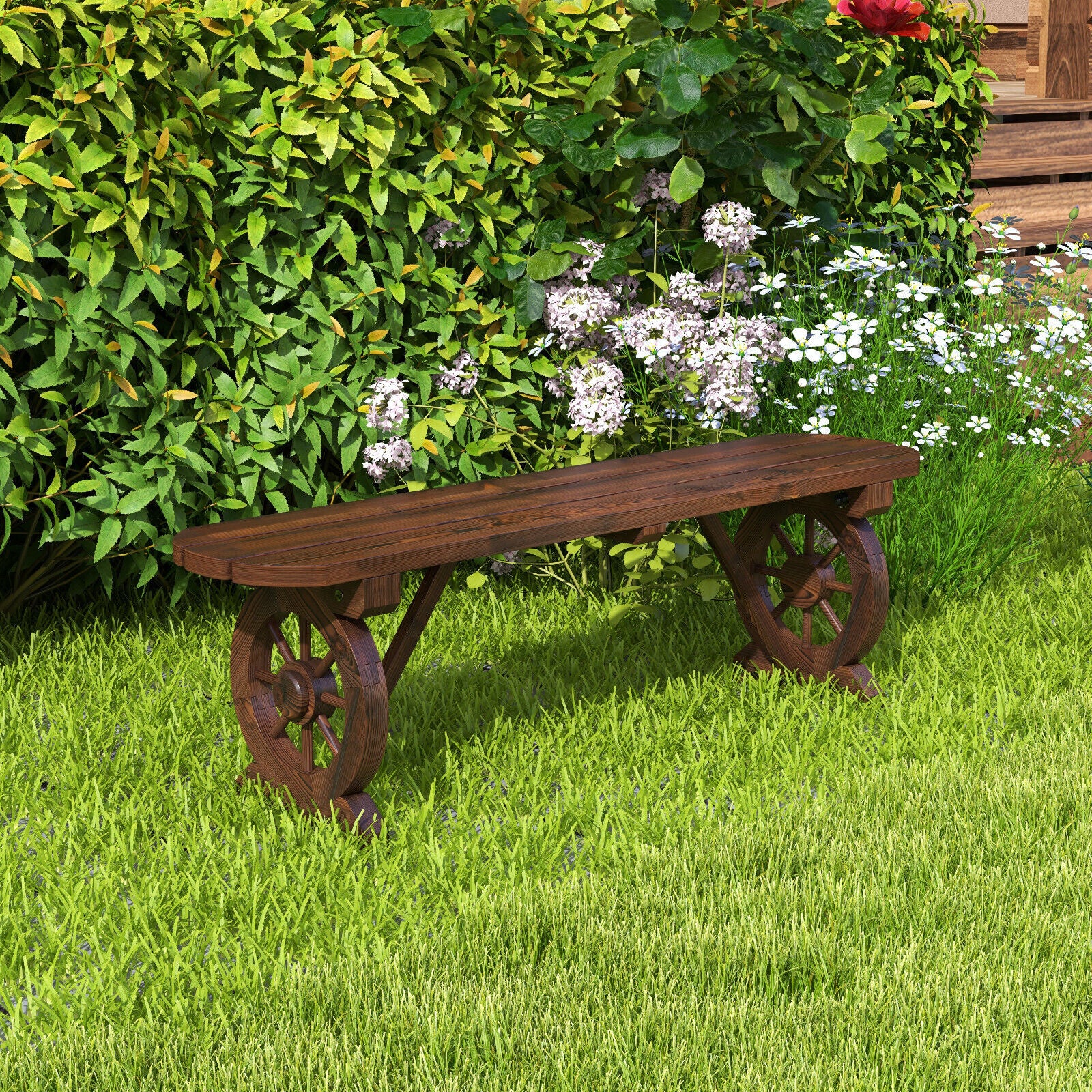 2-Seat Garden Bench Patio Dining Chair Carbonized Wood Rustic Bench 325KG Load
