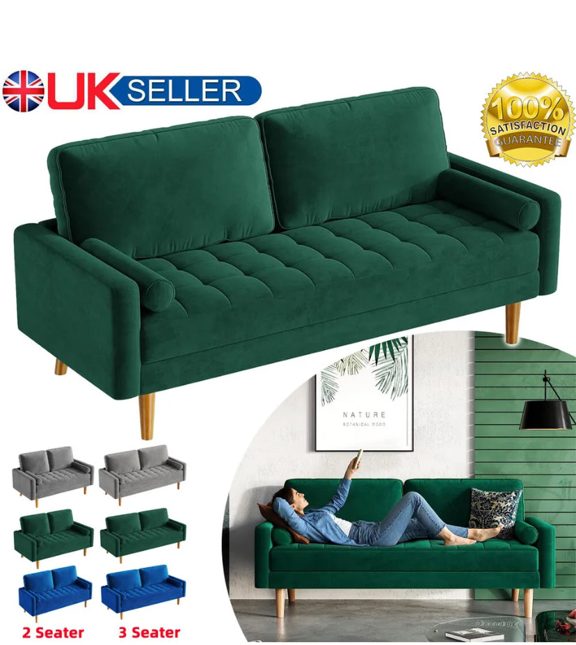 2 Seater 3 Seater Velvet Sofa Modern Couch Love Seat Settee Room Apartment Home