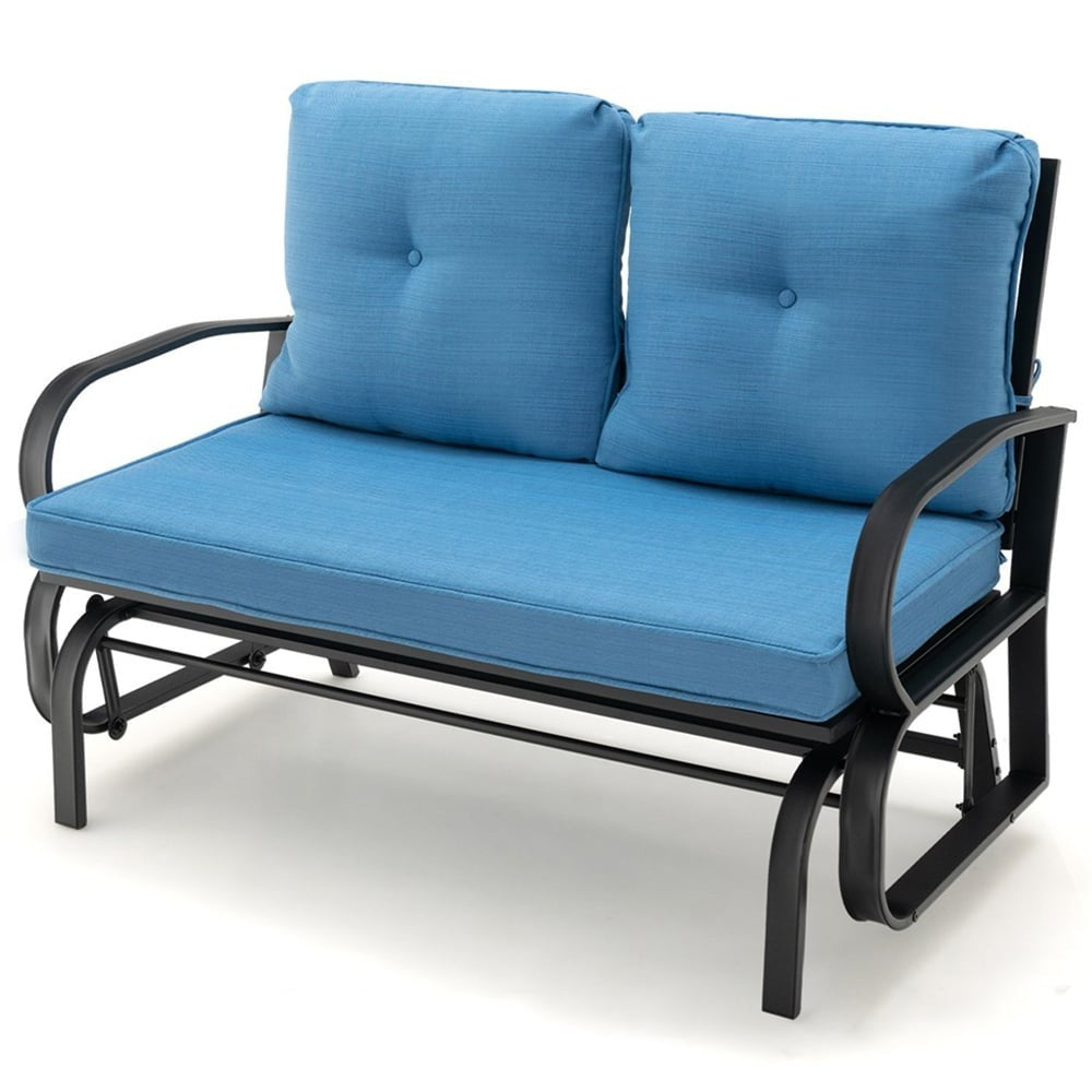 2 Seater Blue Outdoor Glider Bench with Cushions