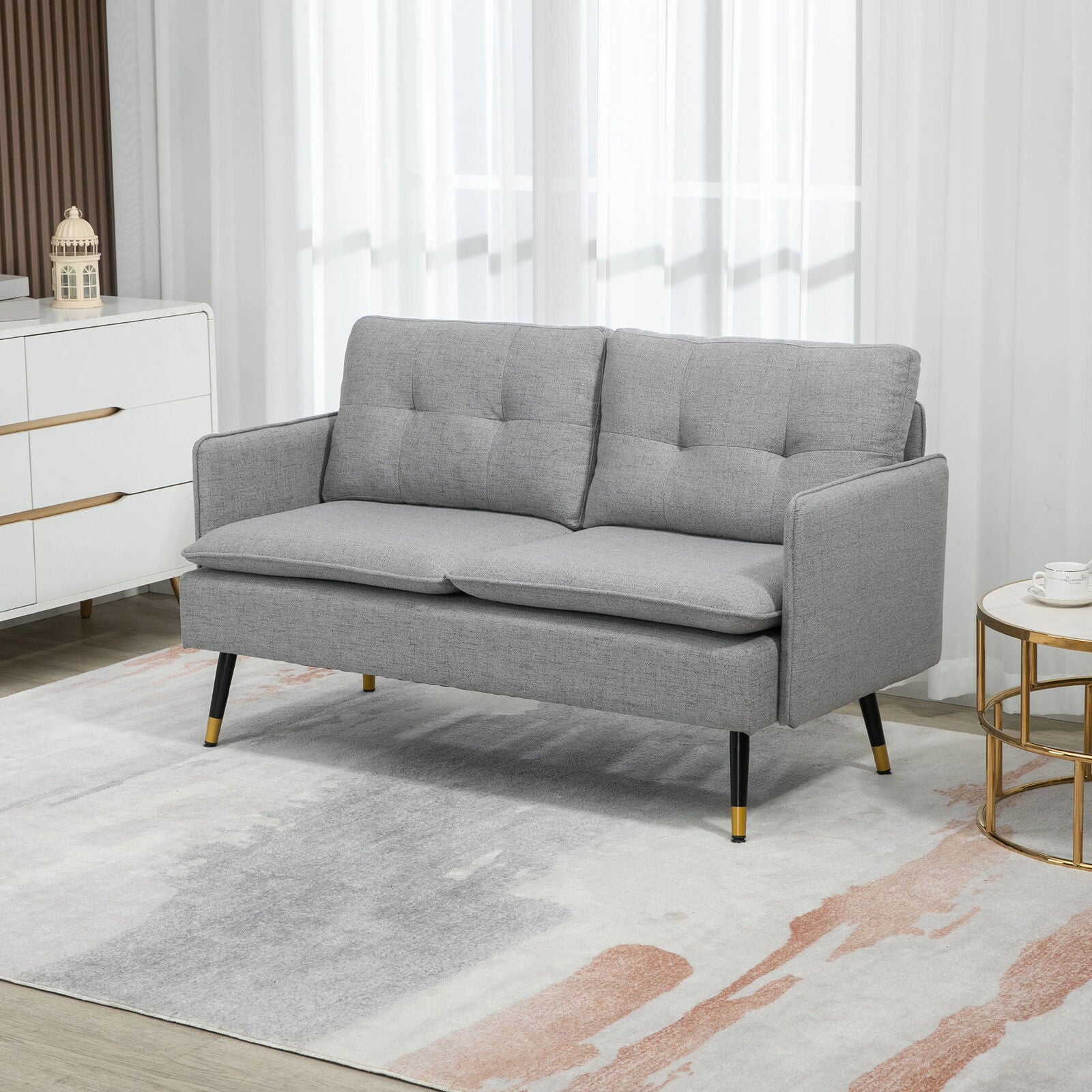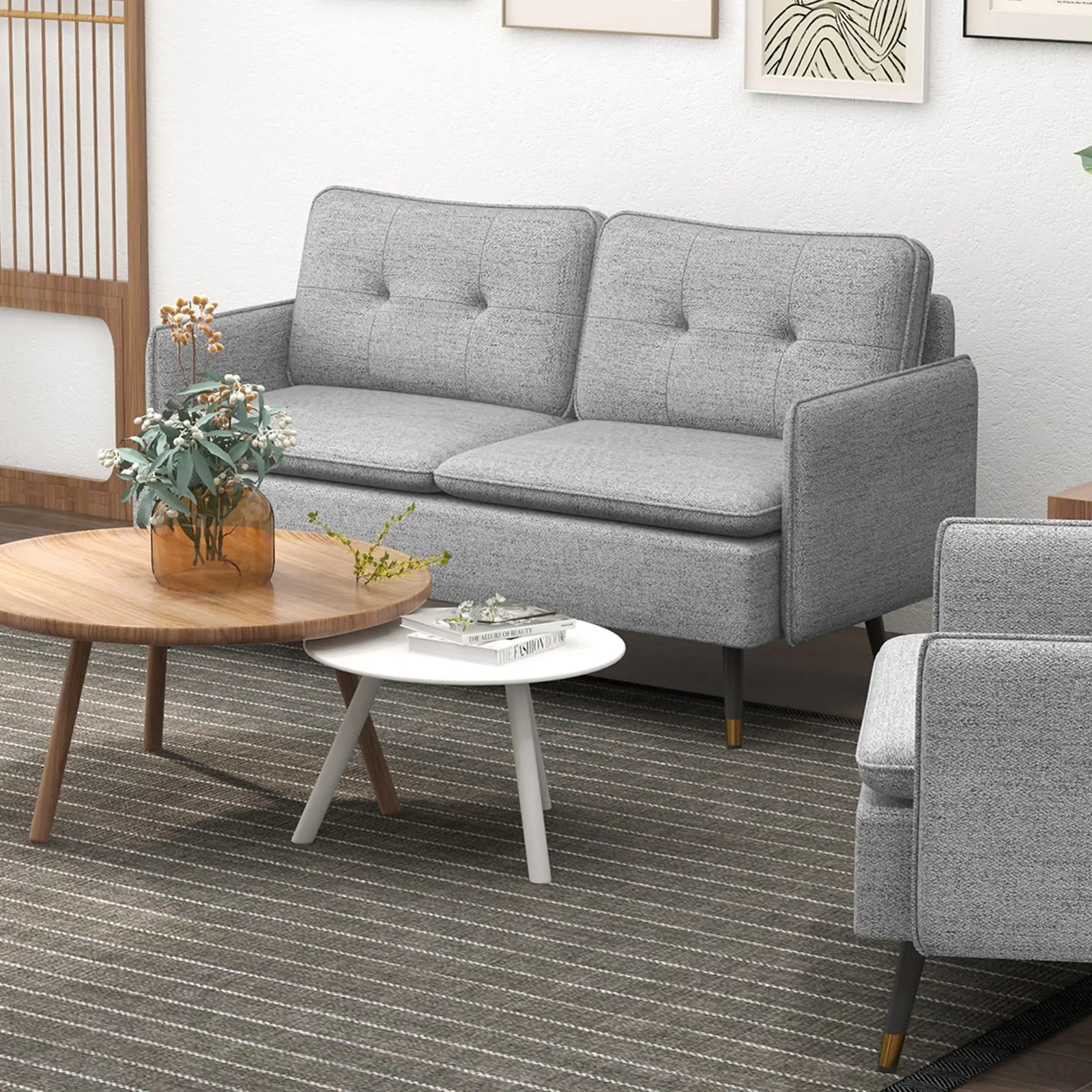 2-Seater Fabric Sofa Button Tufted Loveseat Couch Cushions for Living Room Grey