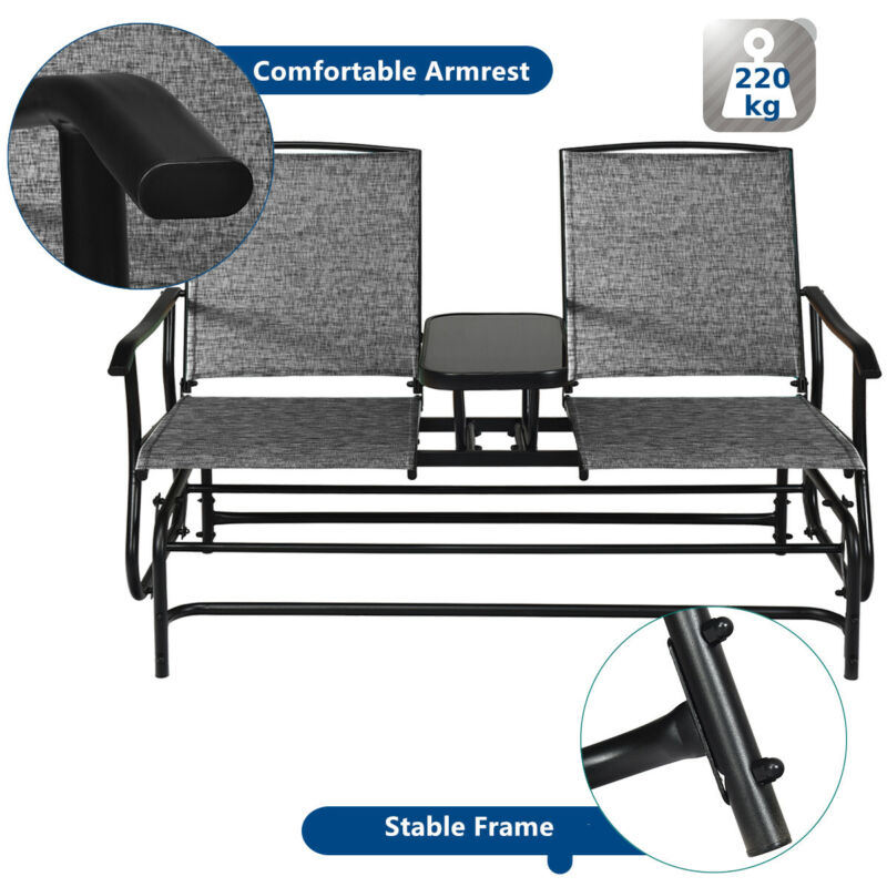 2 Seater Garden Swing Glider Lounge Chair Patio Rocking Armchair W/ Center Table