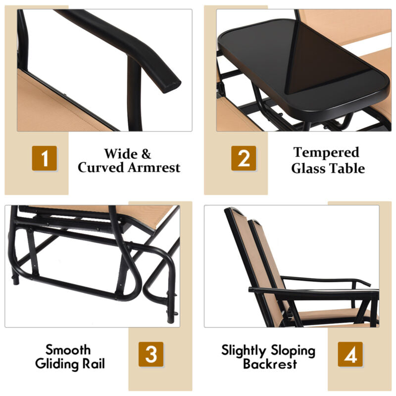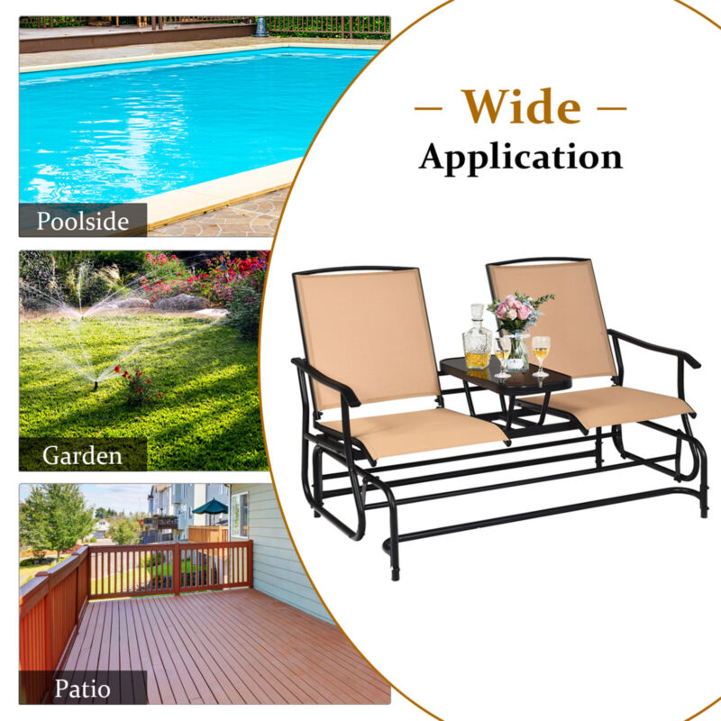2 Seater Garden Swing Glider Lounge Chair Patio Rocking Armchair W/ Center Table