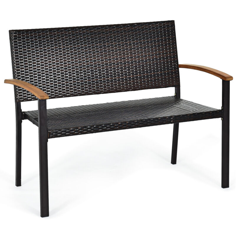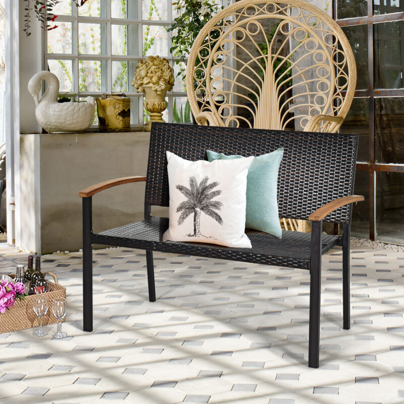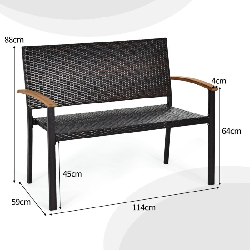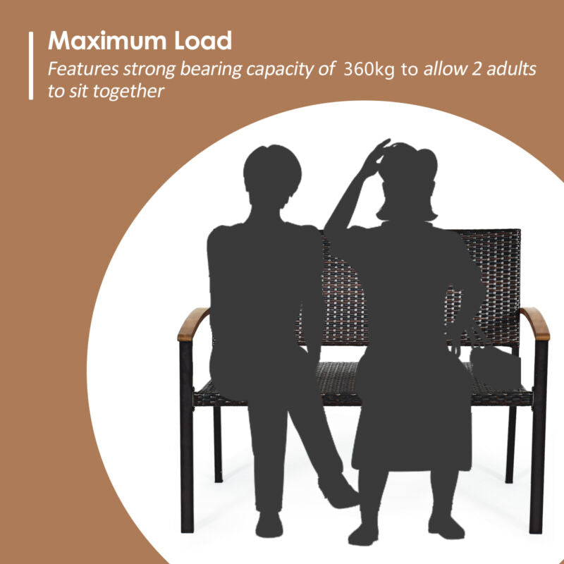2 Seater Patio Garden Bench Outdoor Wicker Loveseat Furniture Park Chair Seat