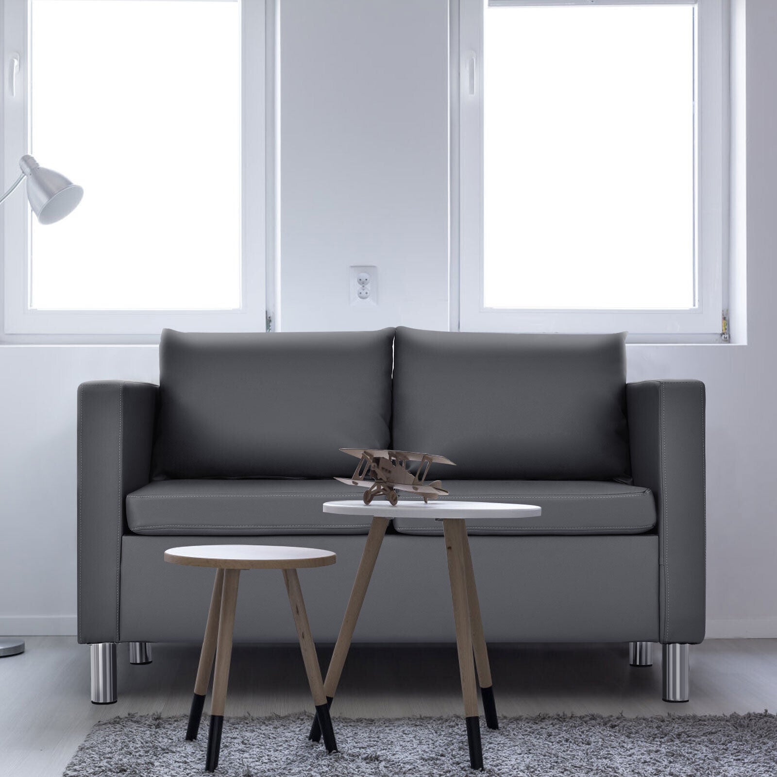 2-Seater PU Leather Accent Tub Sofa Loveseat with Pillows
