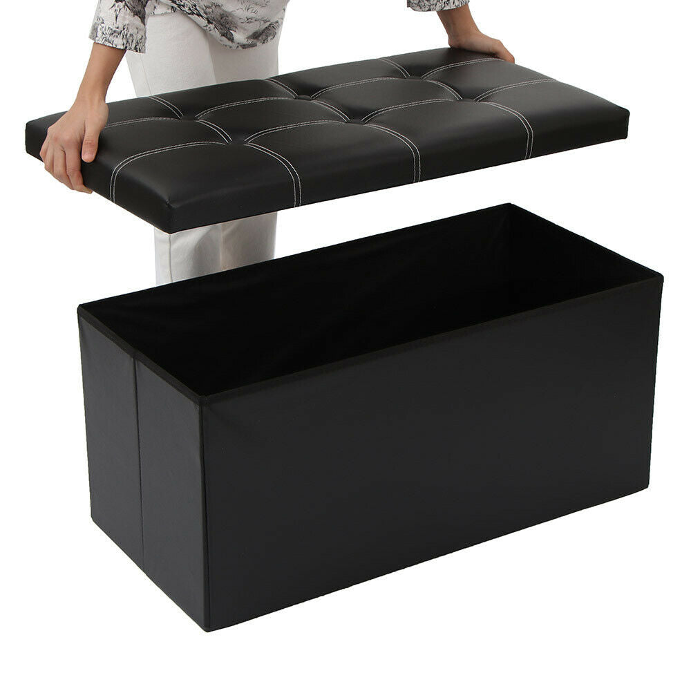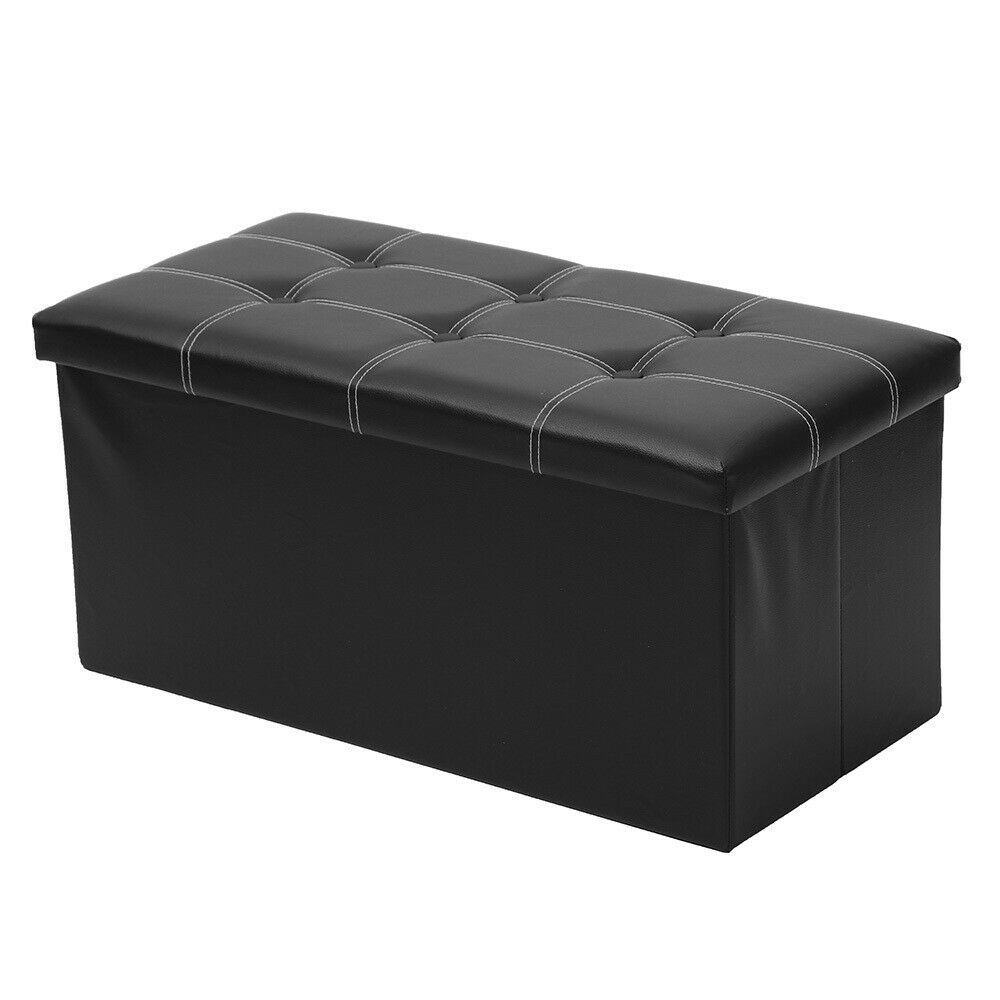 2 Seater PU Leather Storage Ottoman Foldable Seat Stool Bench Chest Toy Box 76CM