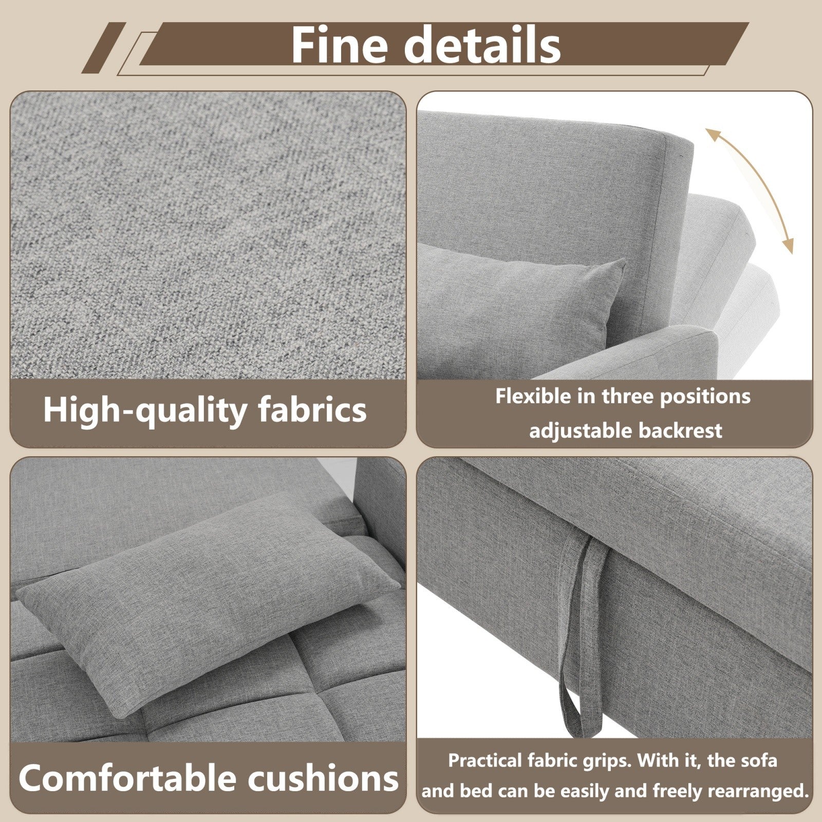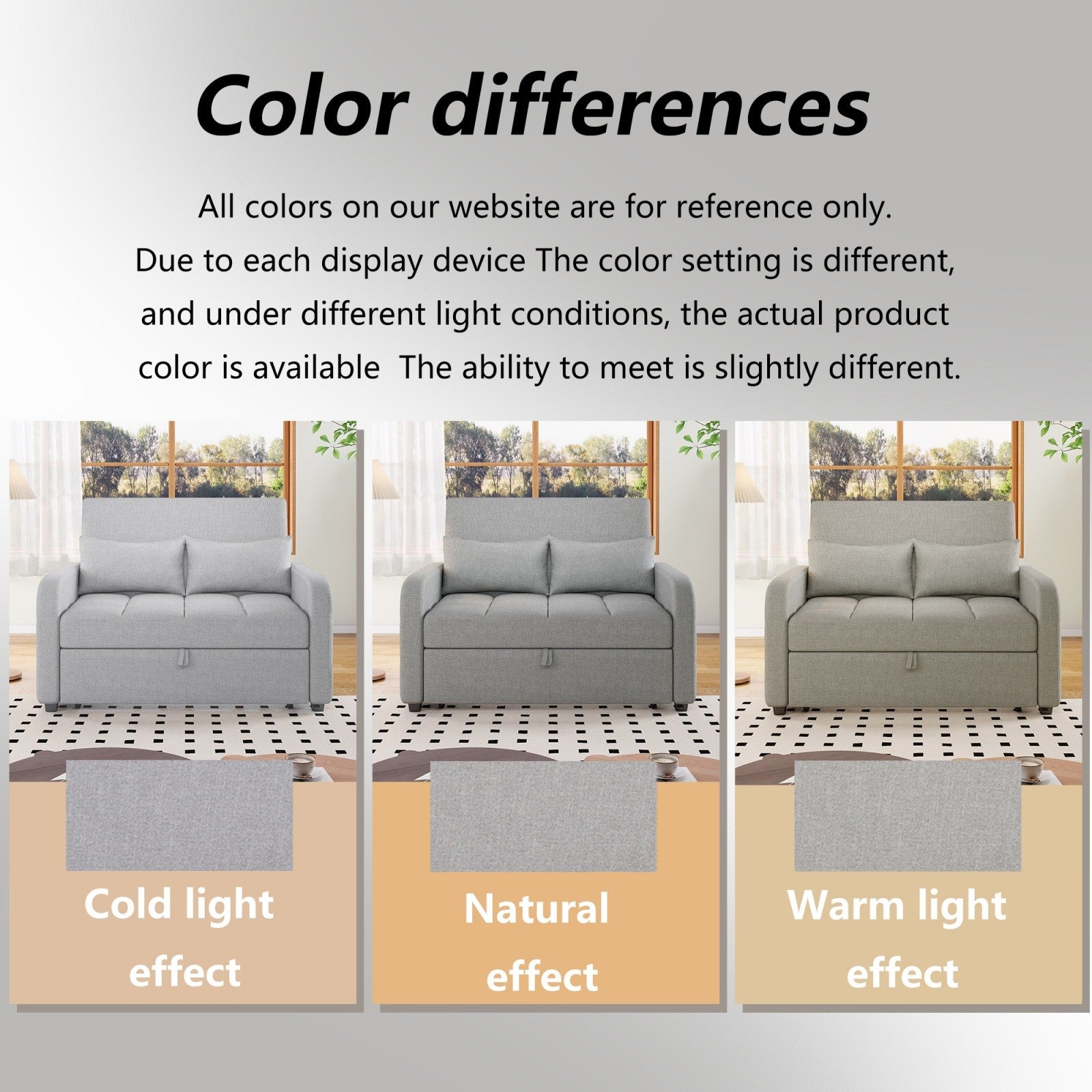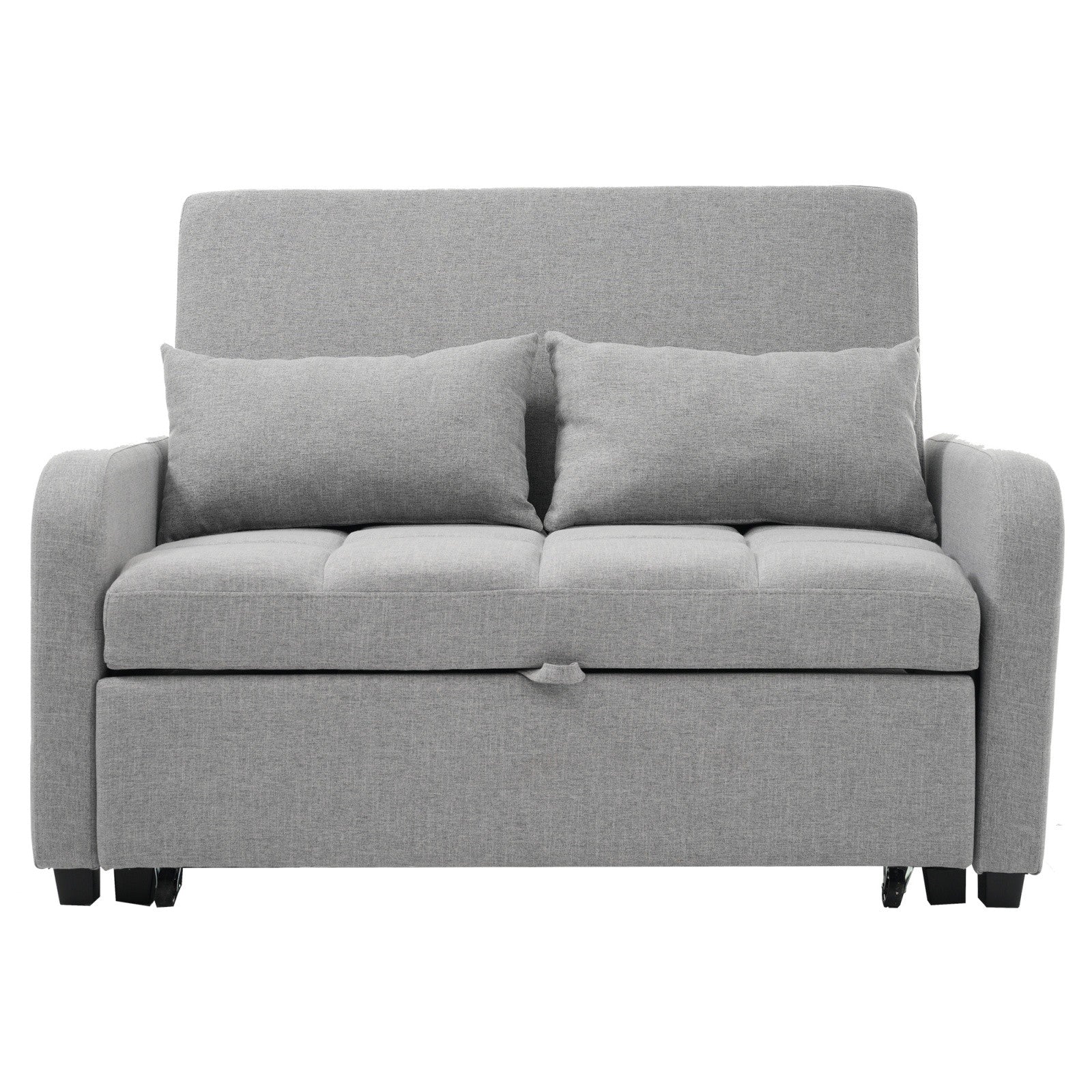 2 Seater Sofa Bed, Convertible Bed Settee Fabric Loveseat Sofa Couch, Grey