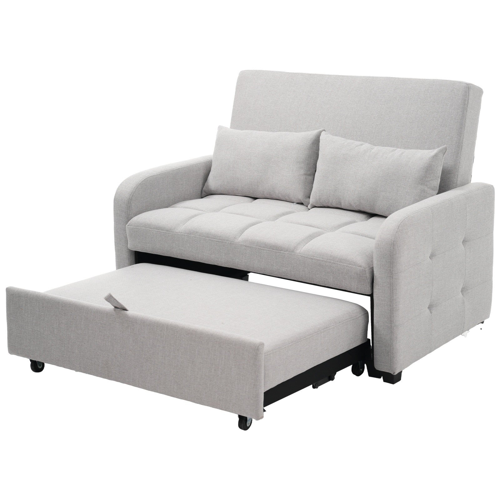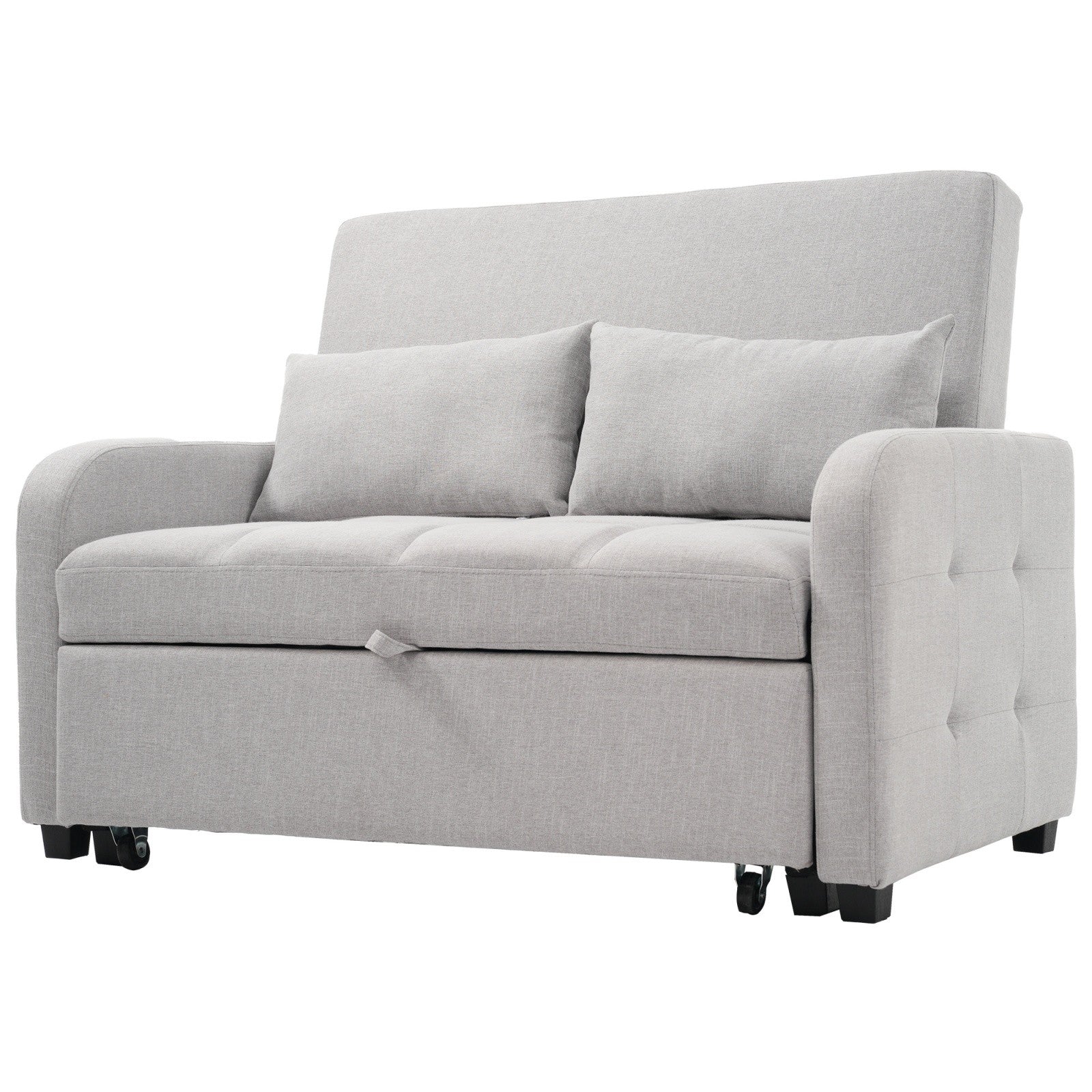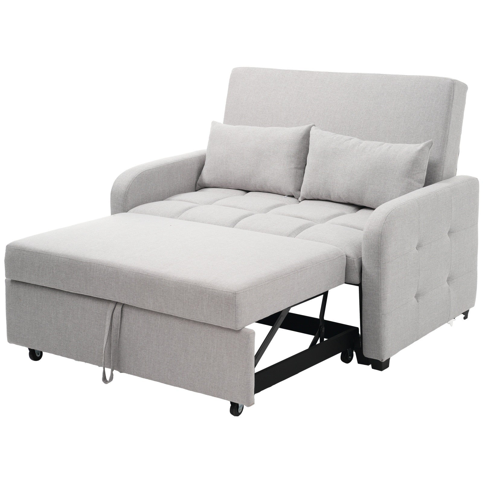 2 Seater Sofa Bed with Adjustable Backrest & Convertible Pull Out Bed Light Grey