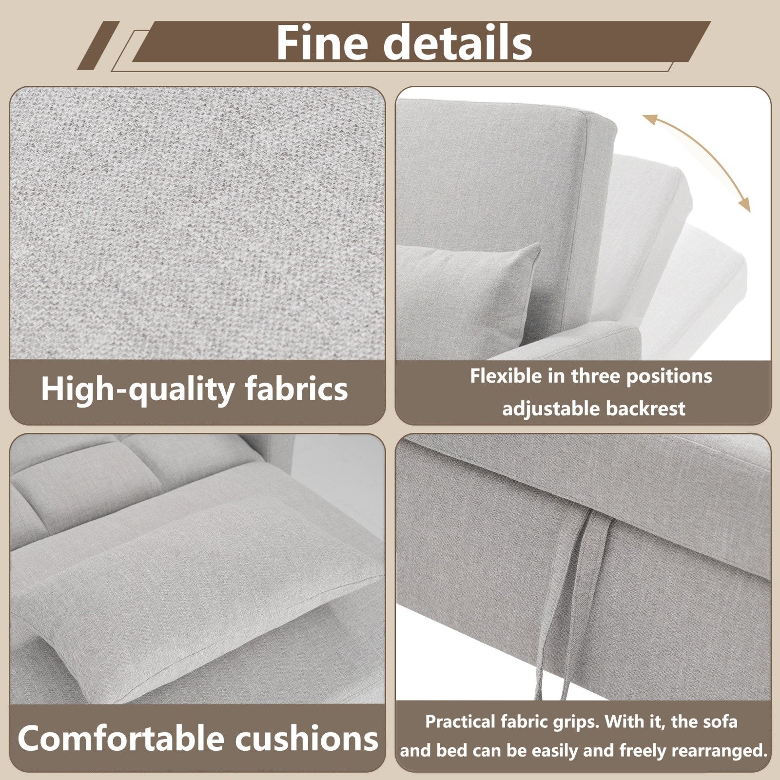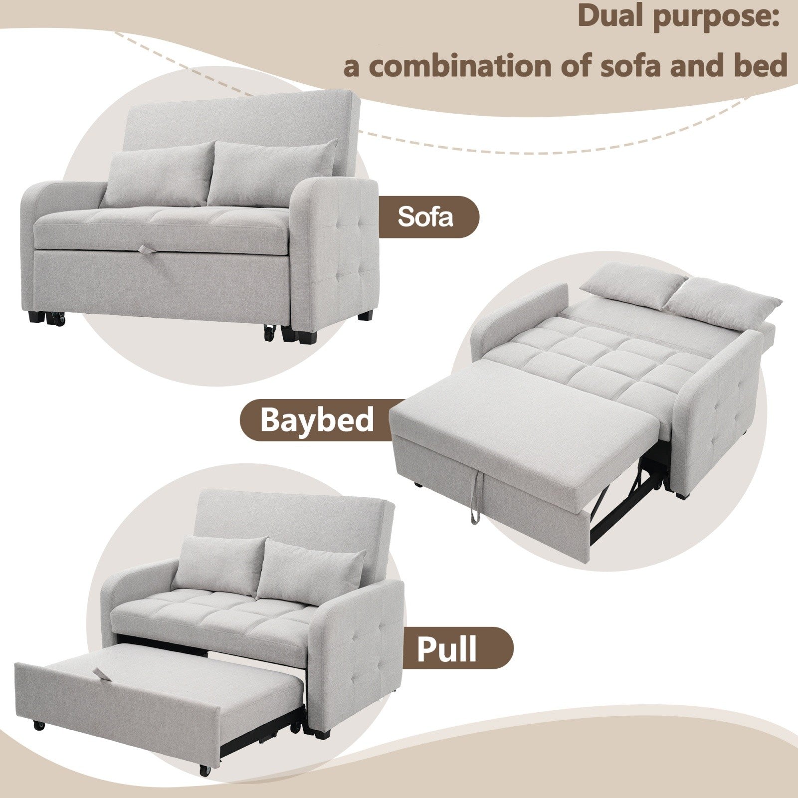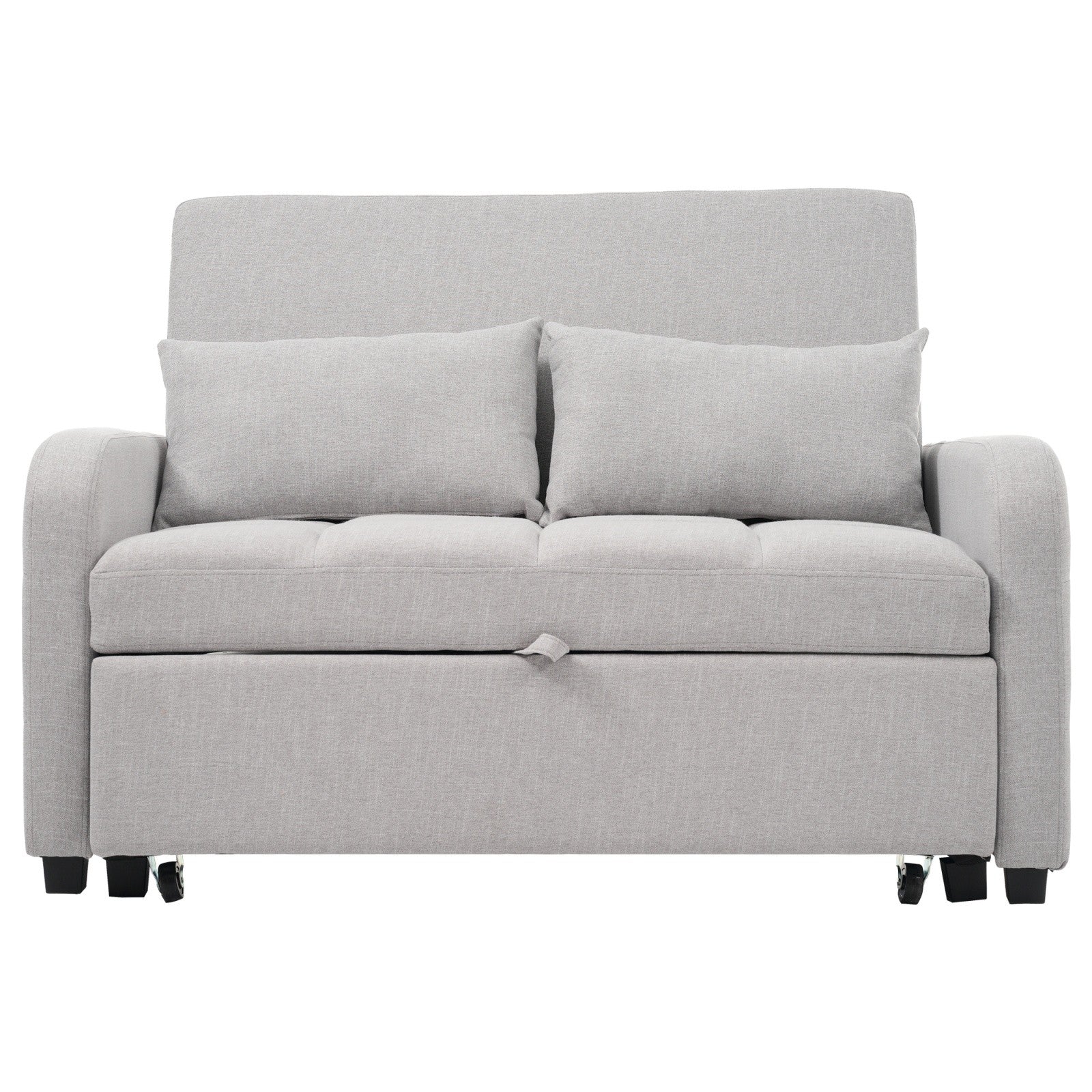 2 Seater Sofa Bed with Adjustable Backrest & Convertible Pull Out Bed Light Grey