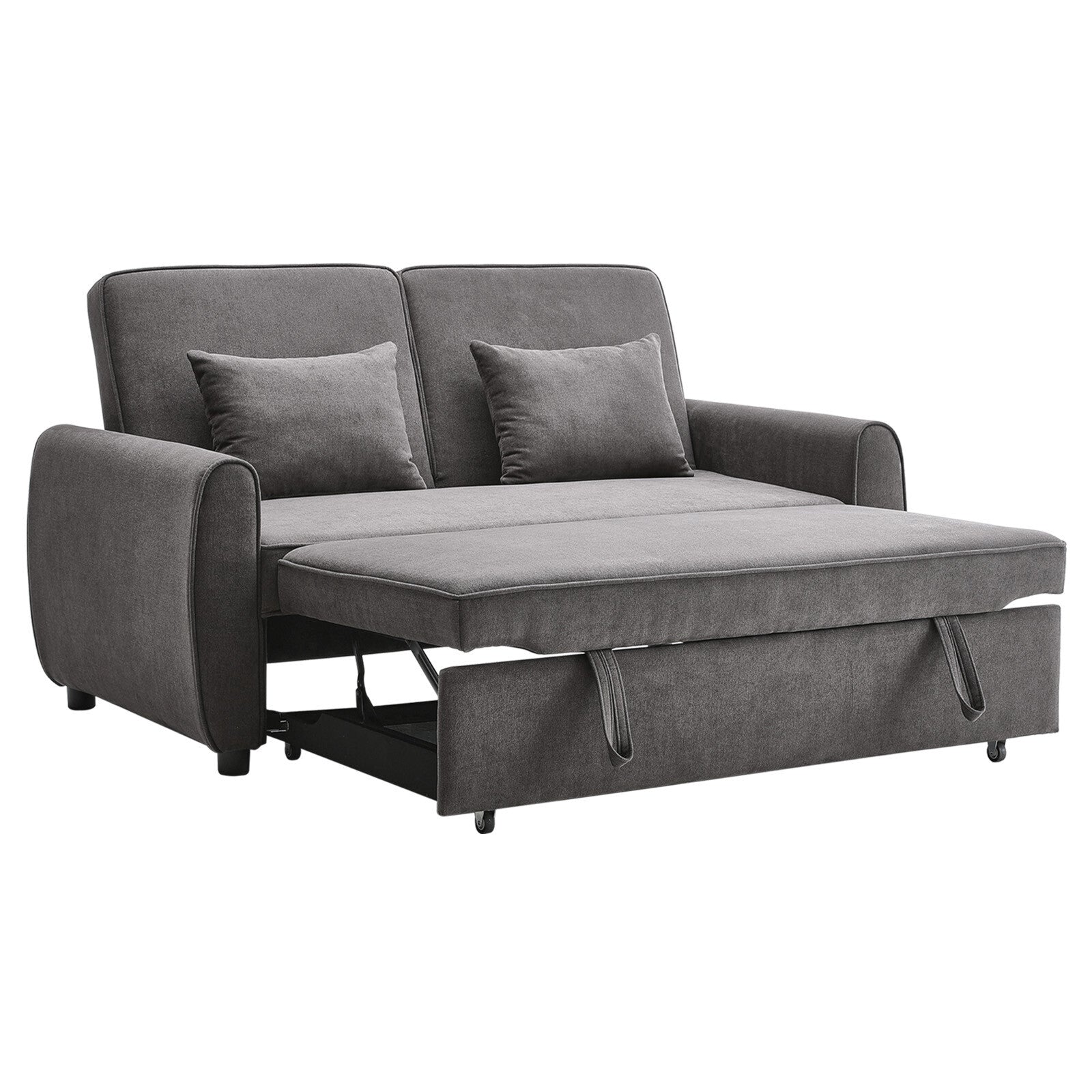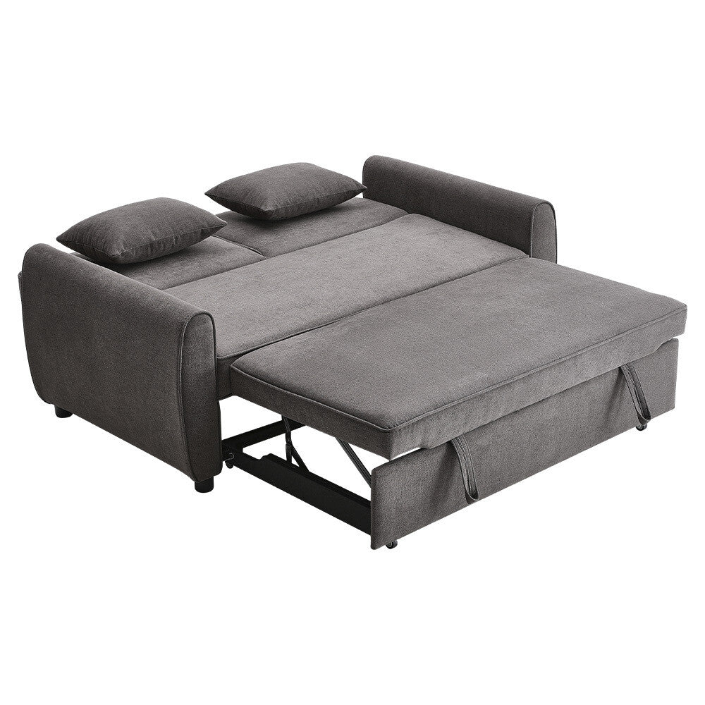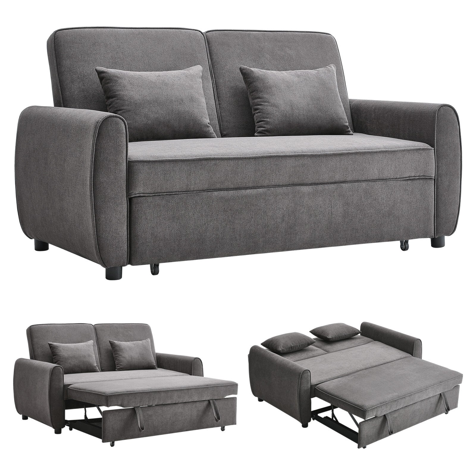2 Seater Sofa Grey Fabric Convertible Sofabed with 2 Cushions Daybed Living Room