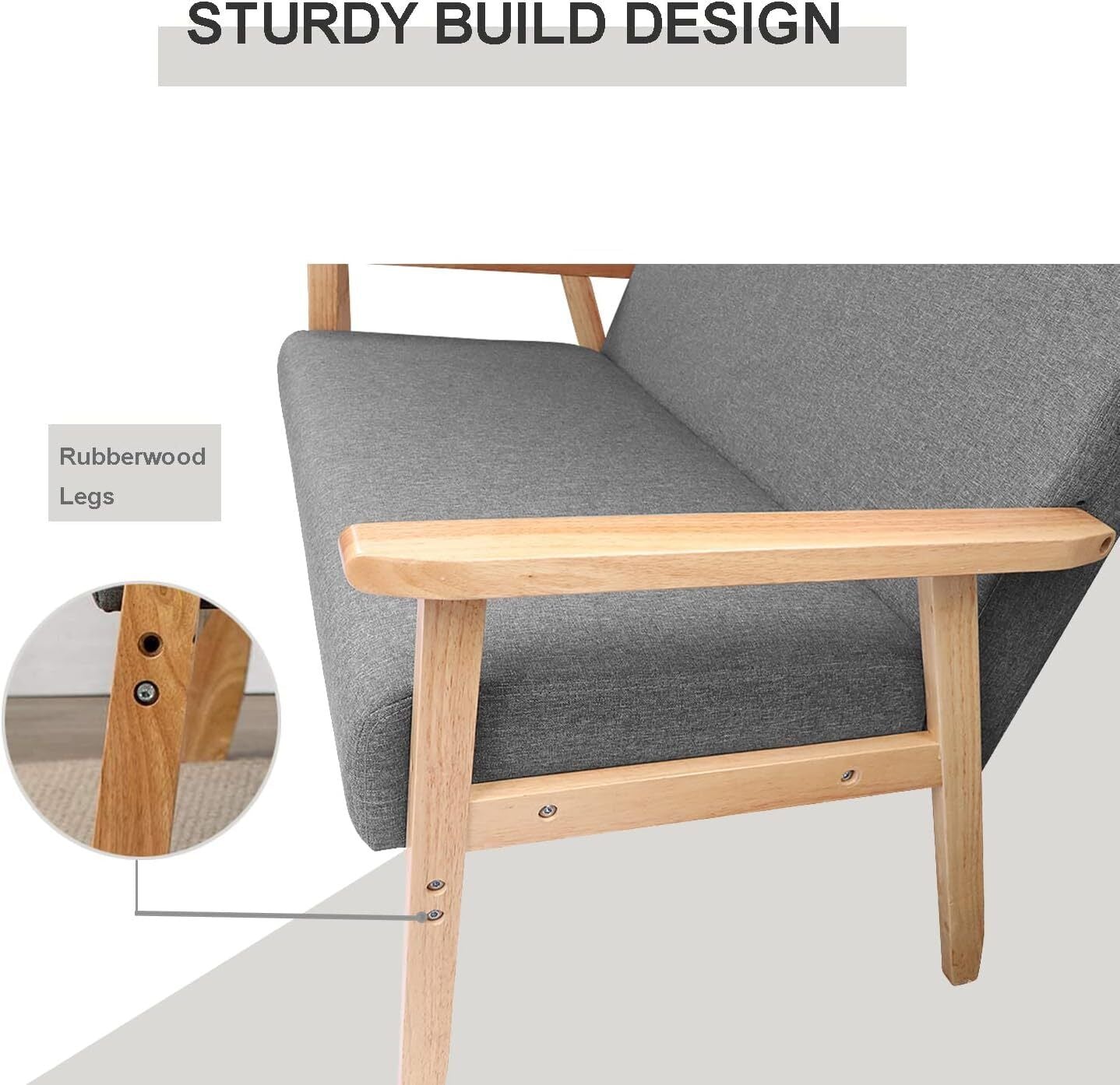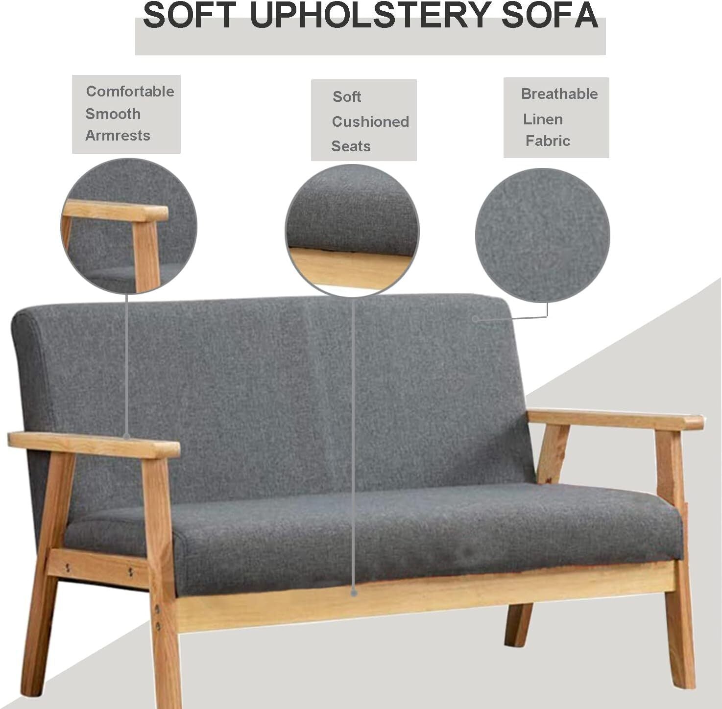 2 Seater Sofa with Wood Frame Linen Fabric Couch Armchair Wooden Comfortable UK