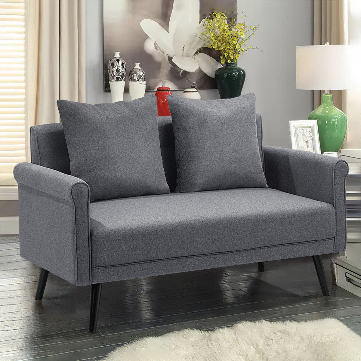 2 Seater Sofas Fabric Upholstered Loveseat Room Apartment Couch with 2 Pillows