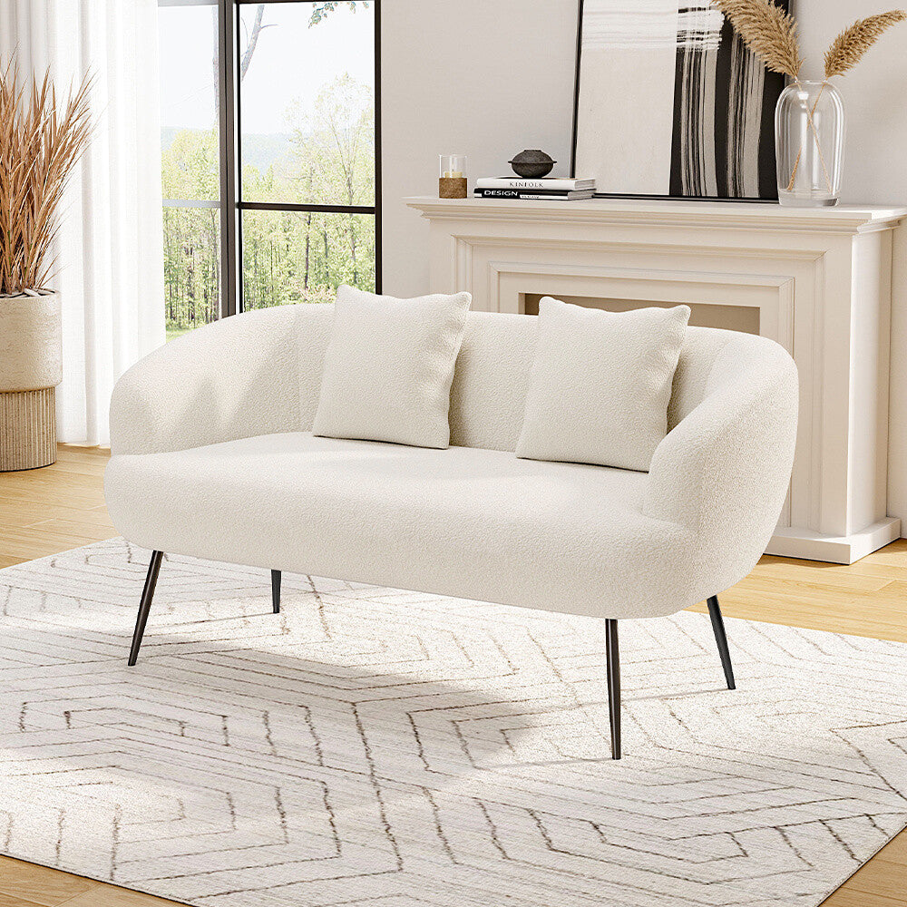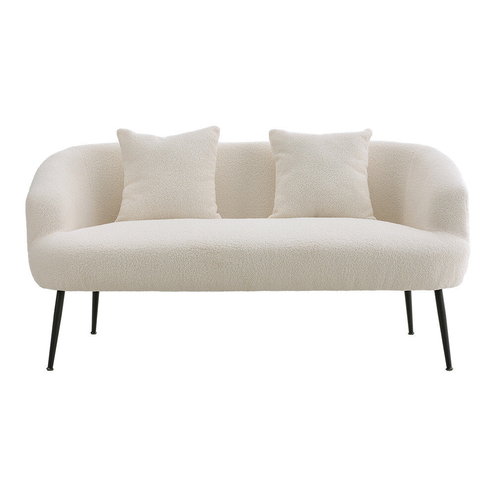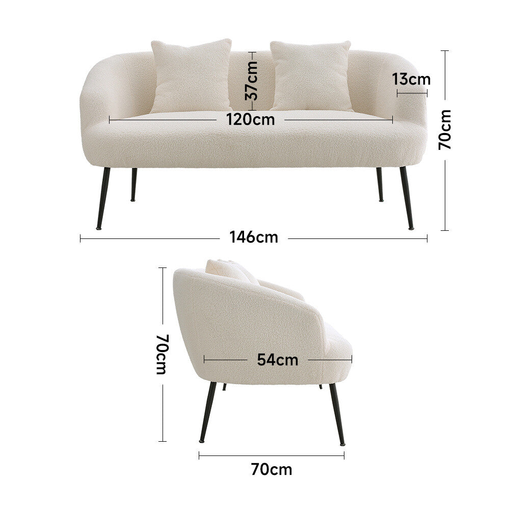2 Seater Teddy Velvet Sofa with 2 Pillows Couch Love Seat Settee Home Metal Legs