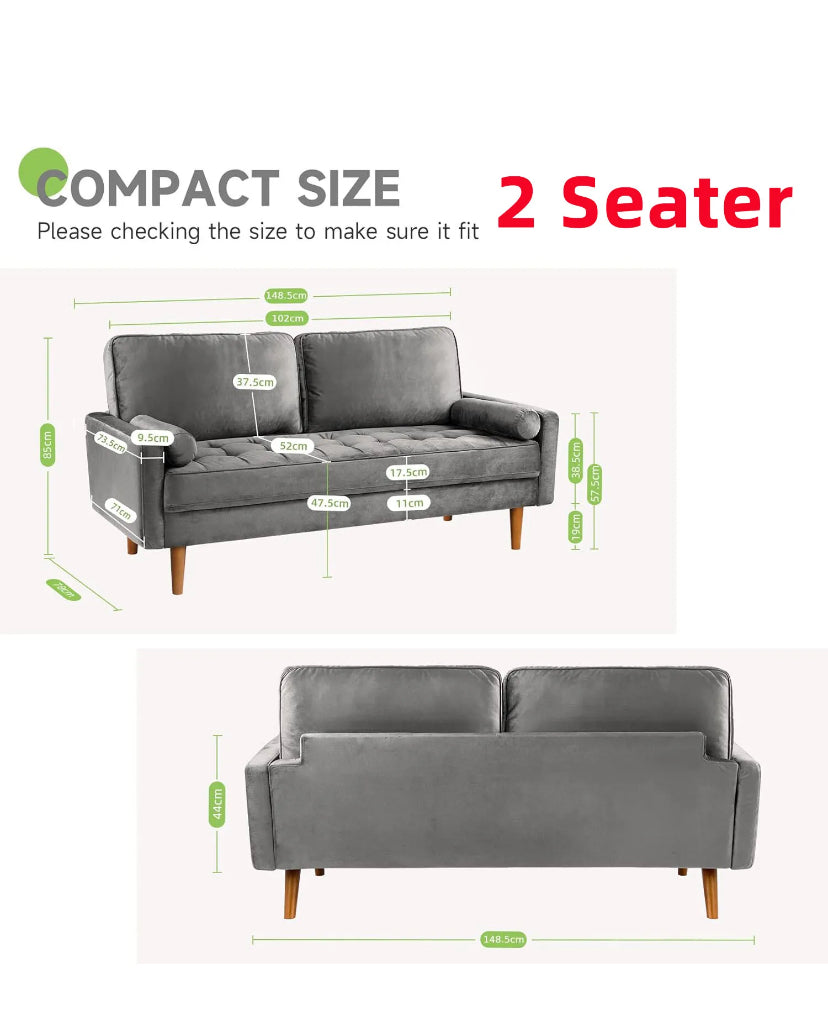 2 Seater Velvet Sofa with 2 Pillows Modern Couch Love Seat Settee Home Office UK