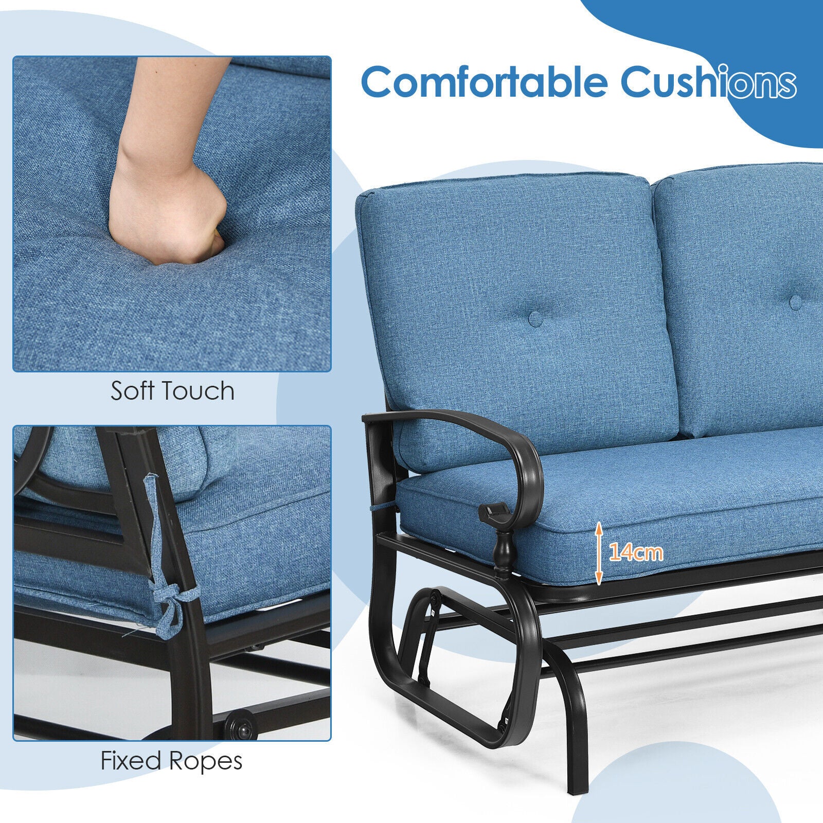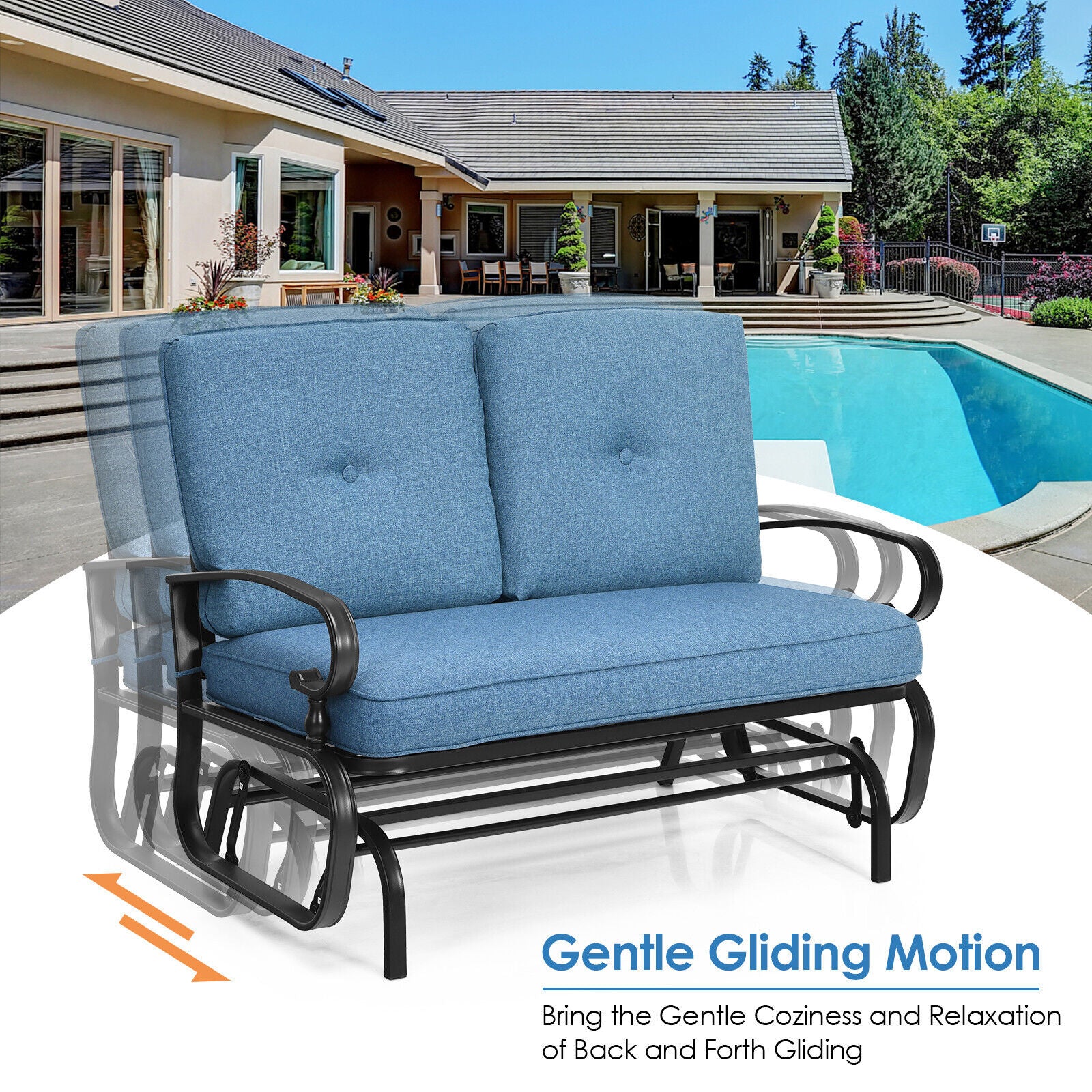 2 Seats Outdoor Swing Glider Chair Patio Loveseat Glider Rocking Bench w/Cushion